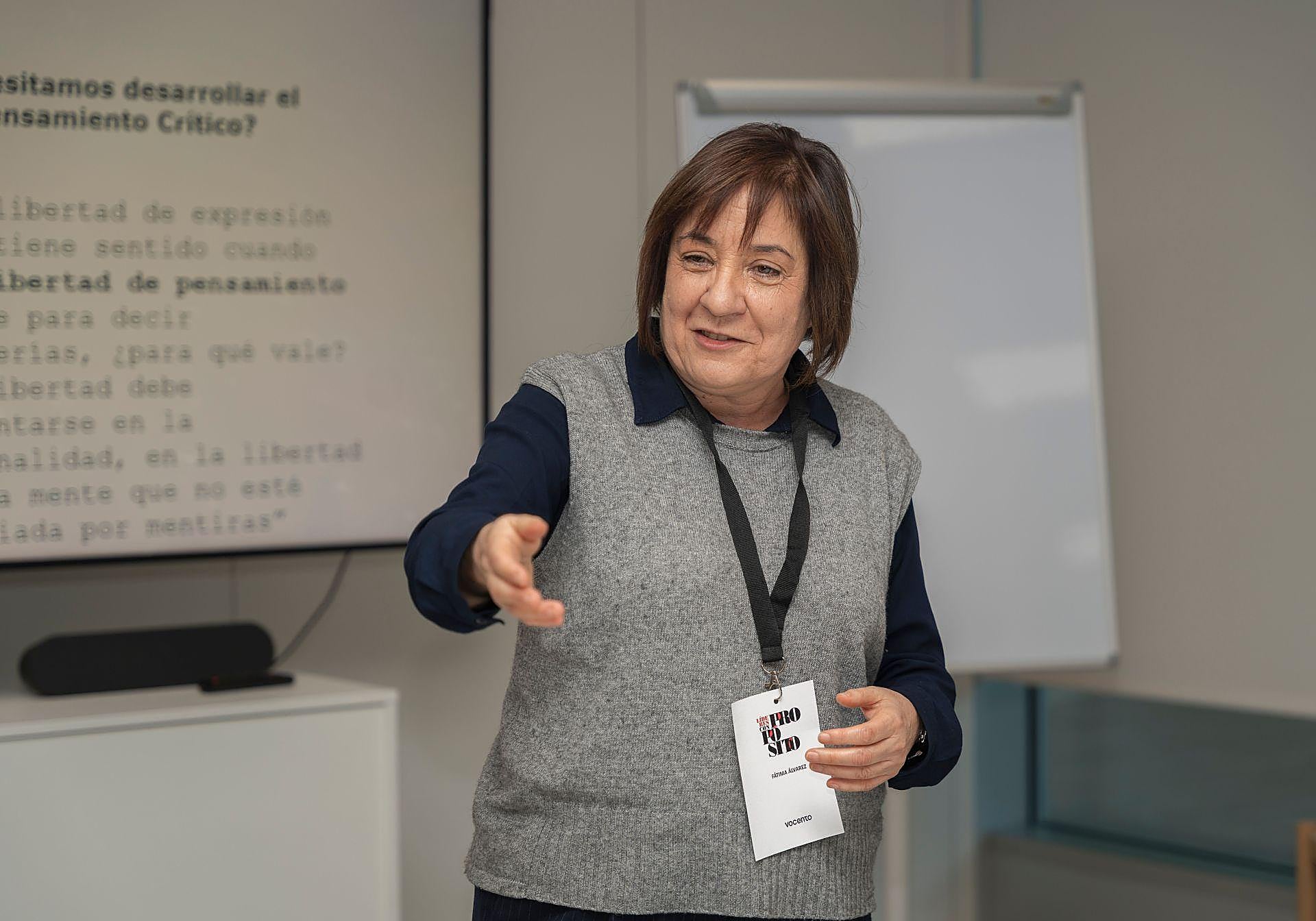Álvarez recurrió, por su parte, a ejemplos, como el de un tamiz (o un colador), que sirvió como metáfora para identificar al pensamiento crítico, la herramienta que permite quedarnos con la parte de pensamiento útil para avanzar en la sociedad del siglo XXI. De hecho, señaló cómo 'crítico' procede del griego antiguo 'krinein', 'cribar', 'discernir'. «Hay que desarrollar (subrayó) la capacidad de tener pensamiento crítico y convertirla en competencia (del mismo modo que cuando queremos aprender, por ejemplo, un idioma: todos tenemos capacidad, pero hay que esforzarse para adquirir la competencia). Debemos ser, por lo tanto, exploradores, para adquirir y desarrollar esta capacidad práctica que nos ayudará a pensar mejor para decidir mejor en el día».