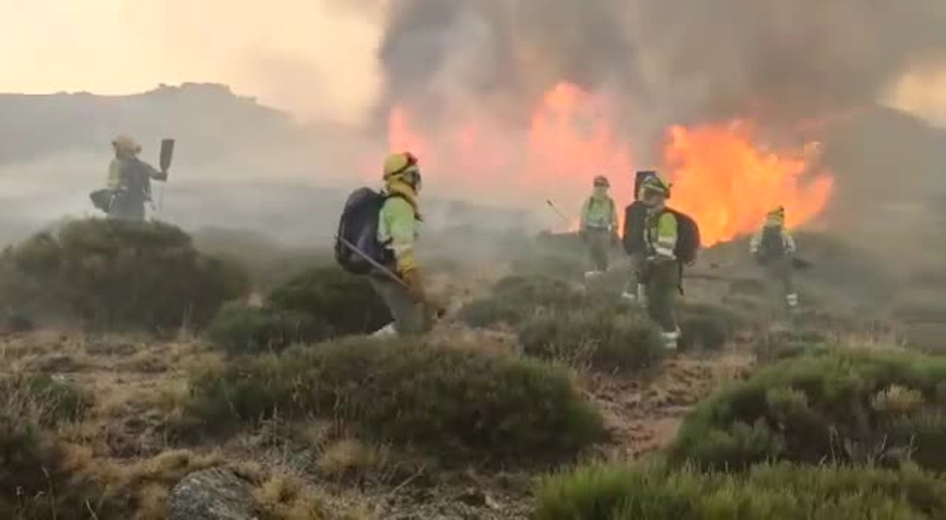 Los brigadistas continúan trabajando en el incendio en Navalacruz