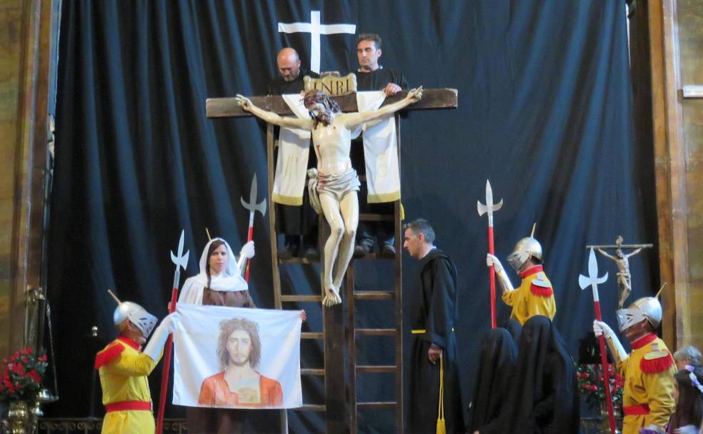 El pasado año 2020 estaba prevista la renovación y actualización de otra tradición centenaria: la representación del Descendimiento, el día de Viernes Santo. Se trata de una ceremonia en la que se desciende un Cristo articulado desde la cruz hasta su urna de cristal, pero la pandemia actual nos lo impidió, tanto el pasado año como el presente.