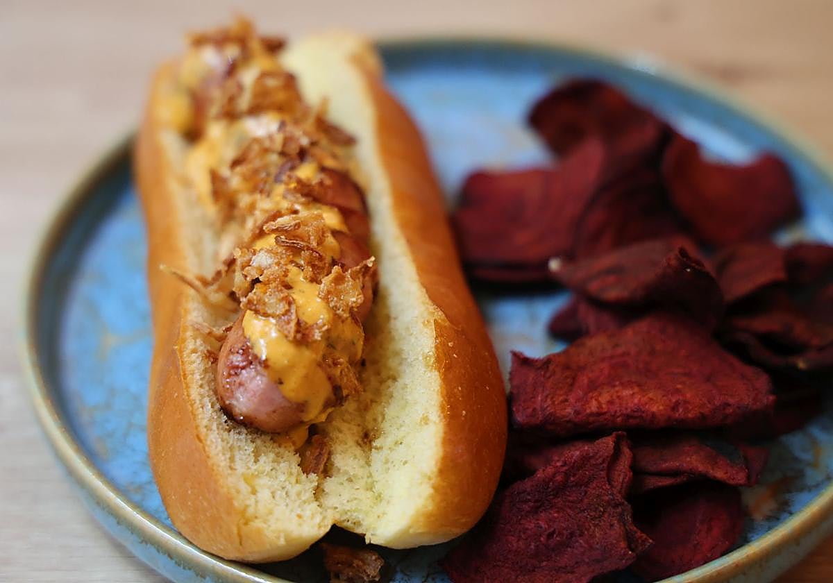 Se deshace en la boca, es muy jugoso y tiene ese toque dulce típico del brioche. A ello hay que añadirle que Álvaro también ofrece con este plato unas originales patatas de remolacha. «Con estas patatas suavizamos el sabor del chimichurri y son perfectas para acompañar al perrito» explica. Una guarnición diferente que también es ideal para aquellos clientes que quieren alejarse de las aceitosas patatas fritas de siempre.