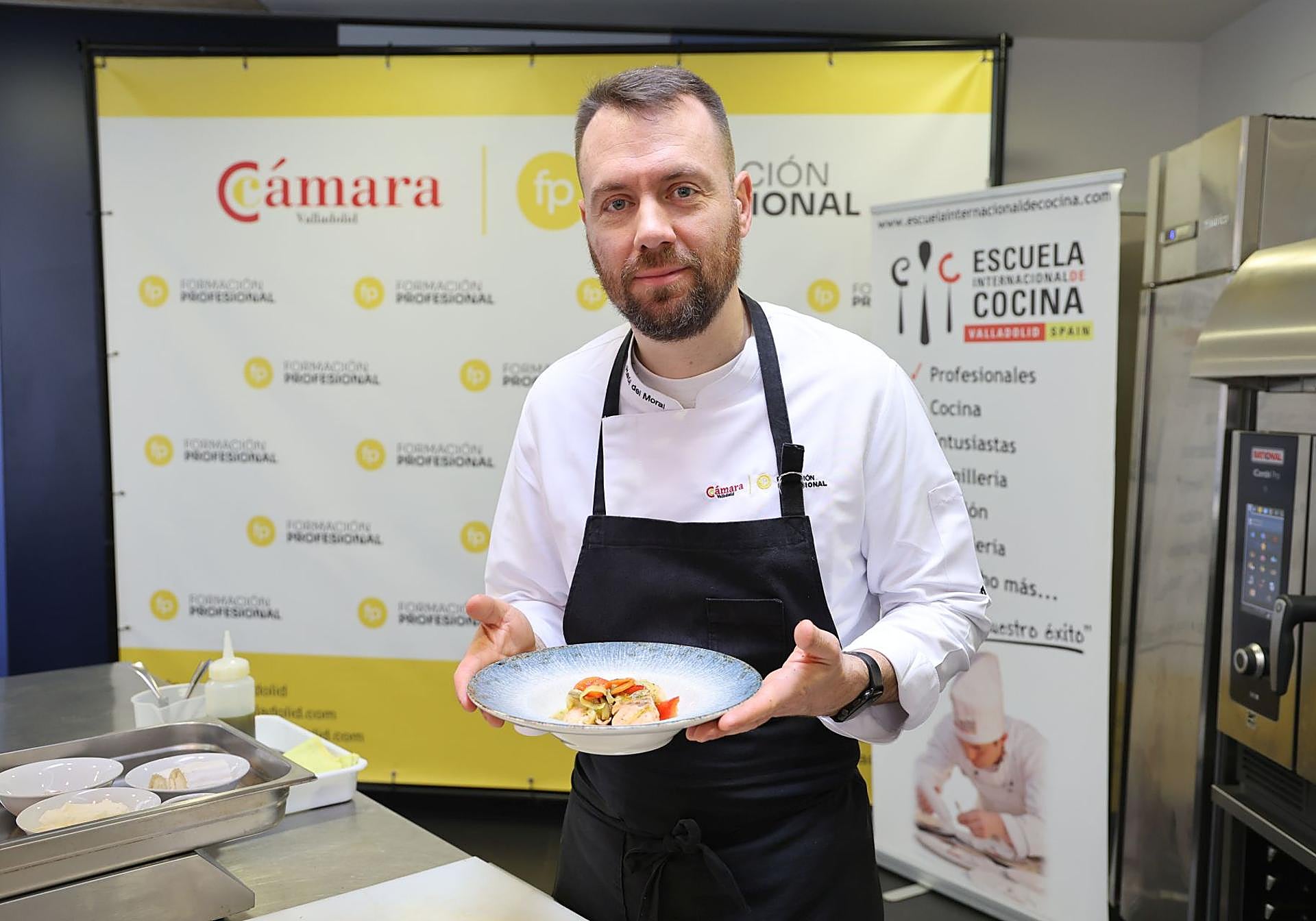 El chef y profesor Víctor Sanz, de la Escuela de Profesionales Alcazarén, cocinará con sus alumnos un Brioche de langostinos mechados. Un bocado elegante y lleno de matices, que une la tradición con la innovación.