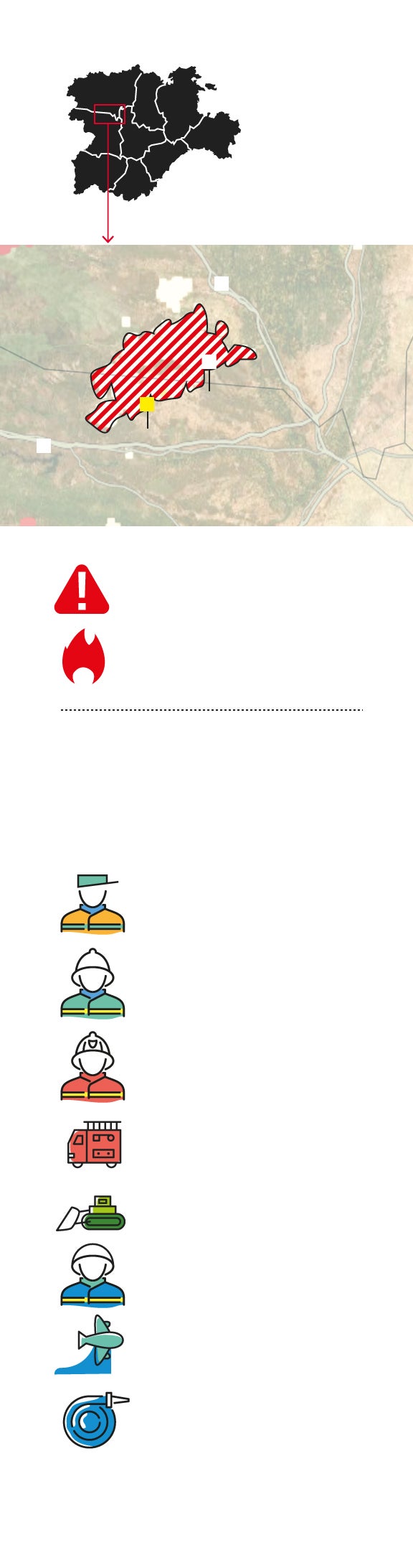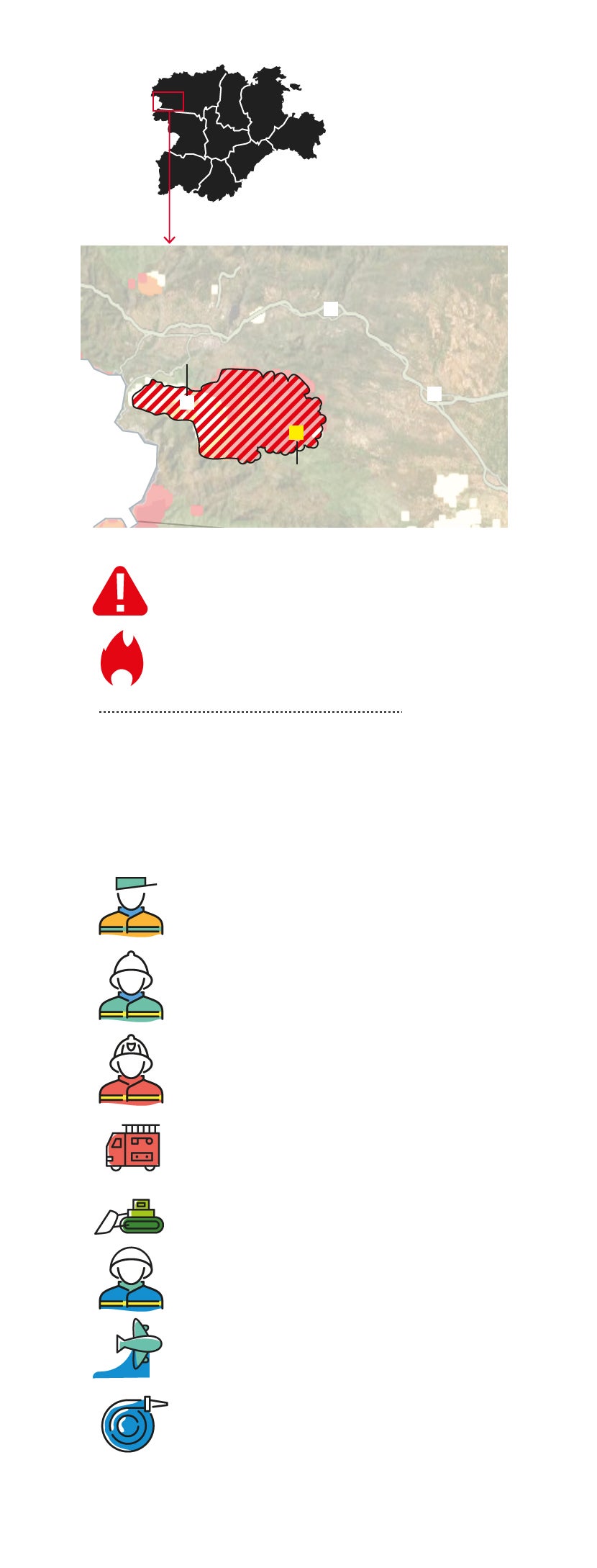 Todas las miradas están pendientes del fuego que, a las 14:45 horas, se ha declarado en San Bartolomé de Pinares, en la provincia de Ávila. El avance de las llamas ha obligado a desalojar a los vecinos del barrio de la Estación y la urbanización Ciudad Ducal, en Las Navas del Marqués. Durante esas primeras horas, el incendio presenta un perímetro de veinte kilómetros, ha carbonizado 600 hectáreas y los técnicos del puesto de mando avanzado advierten de que se avecinan unas «horas críticas». El fuego ha obligado a cortar la línea férrea entre Ávila y Madrid, la DGT ha restringido el tráfico en varias carreteras y, de hecho, el incendio no se dará por controlado hasta cinco días después (el 12 de agosto). El despliegue de medios para extinguir este fuego desde el origen es muy potente: 15 técnicos, 46 agentes medioambientales, 34 cuadrillas, 30 autobombas, 6 bulldozer, 13 cuadrillas helitransportadas, 24 hidroaviones, la UME, Protección Civil, bomberos de la Diputación. La situación durante los próximos días se complicará tanto en Castilla y León que será muy difícil encontrar un operativo así en los fuegos que vendrán a continuación.