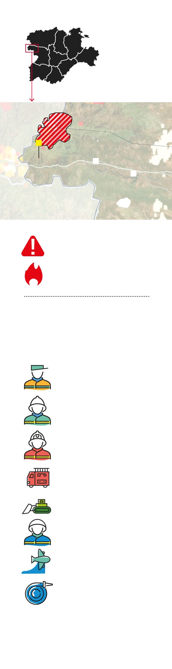La atención en Zamora estaba entonces en el fuego que desde Orense avanzaba hacia los valles de Pías y Hermisende, ya que el frente del fuego, de 20 kilómetros, «es muy agresivo y viene descontrolado». De momento, ya se han desalojado 1.718 residentes de cinco municipios del valle de Porto y Pías, además de la localidad de Castromil, muchos de ellos acogidos en el albergue de Puebla. En estos incendios de Zamora, así como en los de León, hay desplegados 420 efectivos de la UME, además de 2.200 personas de apoyo.