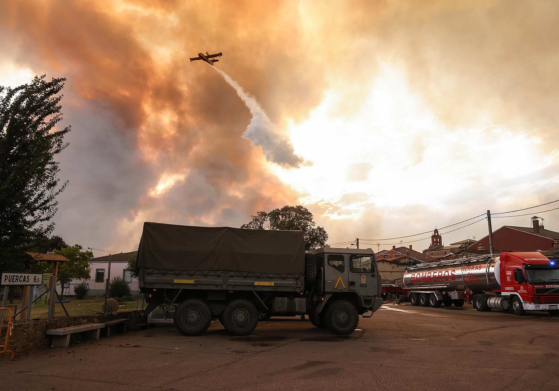 Así es como empiezan las llamas de Fasgar, uno de los 33 incendios forestales de alto riesgo (más de doscientos en total) que desde ese viernes 8 devoran bosques, montes y tierras de labor en la comunidad. Primero por el entorno de Las Médulas. Apenas 48 horas después se une el norte de Zamora. El día 13 comienza el horror en Salamanca y cerca de los Picos de Europa. El jueves 14 las miradas se dirigen hacia Sanabria. No dejan de prender focos en la comunidad y en territorios vecinos, porque también las llamas, que no saben de fronteras, llegarán en las próximas jornadas desde Orense o Cáceres.
