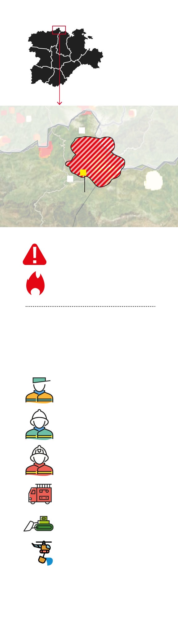Viernes 8 de agosto. España lleva desde el domingo anterior inmersa en una ola de calor que ya se aventura que será larga. La Agencia Estatal de Meteorología avisa no solo de temperaturas desbocadas, sino también de riesgo extremo por incendios. La Junta de Castilla y León ha declarado desde el lunes 4 la alerta por el incremento de riesgo meteorológico de fuegos forestales. El monte es un polvorín que está a punto de estallar. Y la primera llama del infierno prende ese viernes 8 de agosto, a las 17:24 horas, por culpa de un rayo (así lo dicen las primeras investigaciones) que cae en el término municipal de Murias de Paredes, en la provincia de León.