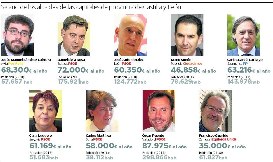 Las cuantías oscilan entre los 87.975 euros brutos que percibe el regidor vallisoletano y los 35.000 del de Zamora