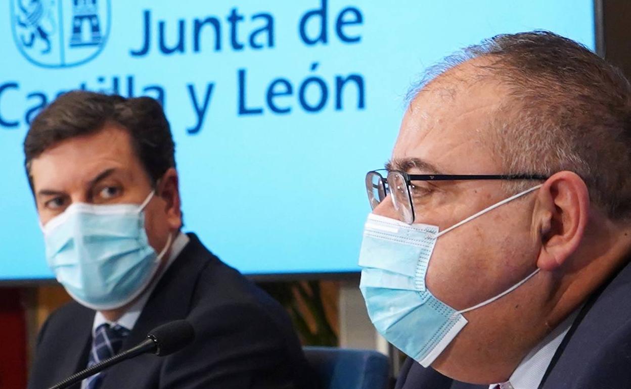 En plena campaña electoral de cara al 13-F y con los contagios de coronavirus en una clara tendencia a la baja, comparecen ante los medios de comunicación el consejero de Economía y Hacienda y portavoz el Gobierno de la comunidad, Carlos Fernández Carriedo; y el consejero de Sanidad, Alejandro Vázquez