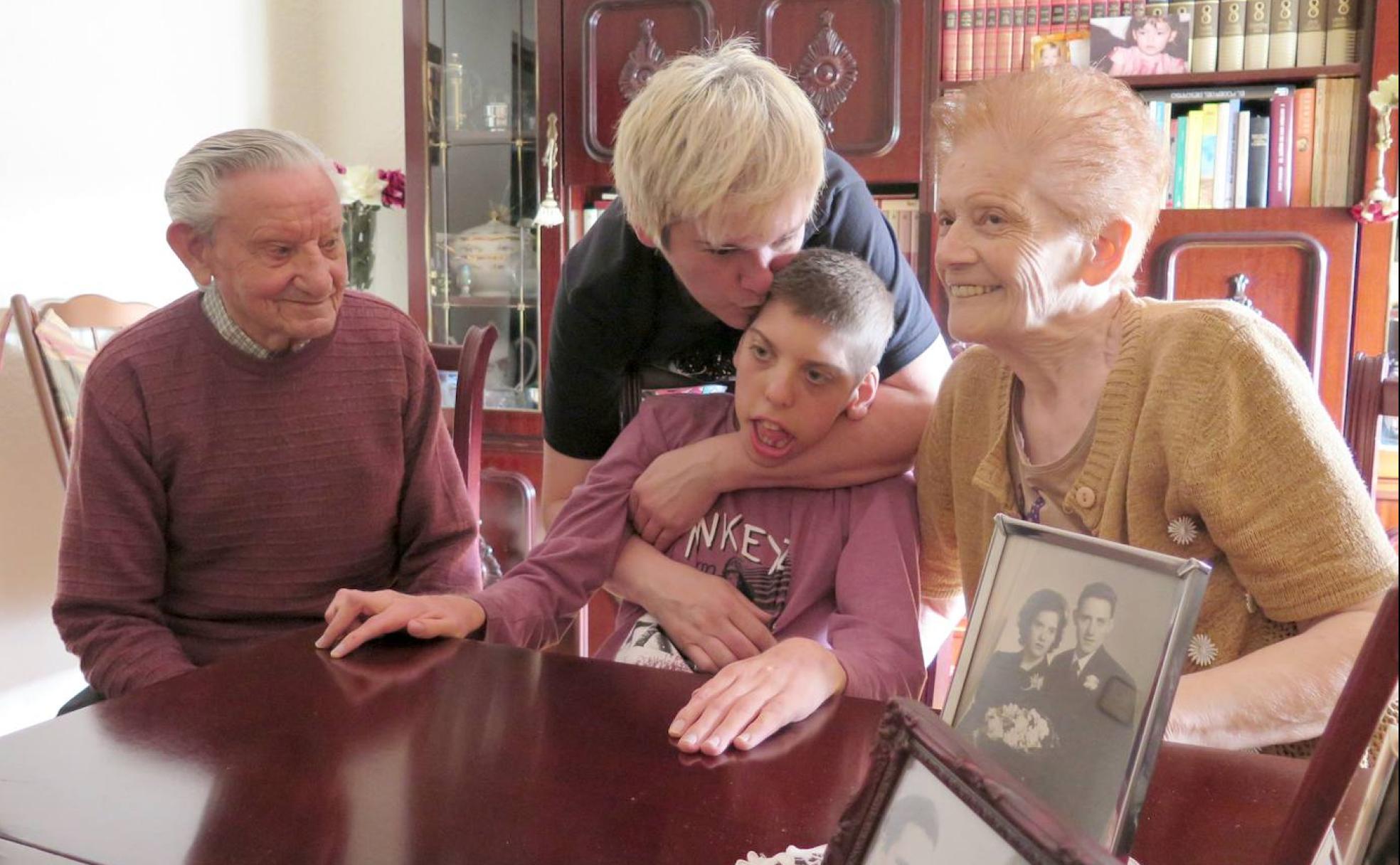 David necesita de alguien para llevar a cabo cualquier tarea diaria. En brazos recorre su casa y su rutina y acude al Centro de Día, donde realiza actividades. Nada de esto limita a la familia. «Tiene que disfrutar la vida, hemos estado en París y en Canarias… ¡Y hasta montó en moto!». David se deja disfrazar (lo «petó» en Halloween con su disfraz de maruja zombi) y la cara de Marilé cambia según avanza el relato. «Es la leche decirlo, pero pensar en que yo podría morir antes que él… no quiero por nada del mundo que no esté, pero nada me asegura que si no estoy él vaya a estar bien».