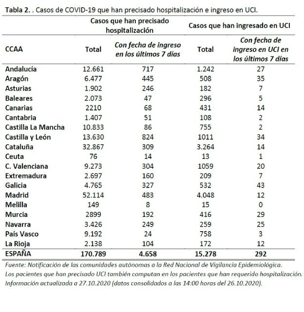 Castilla y León, según los datos ofrecidos ayer por la tarde por el Ministerio de Sanidad, es la comunidad autónoma en la que más personas con coronavirus han tenido que ingresar en un hospital en los últimos siete días.
