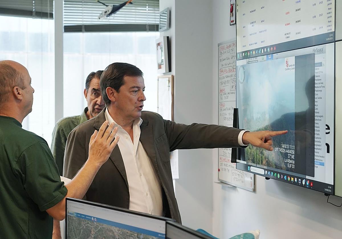 En una atención a medios tras su visita junto al presidente del PP, Alberto Núñez Feijóo, al Puesto de Mando Avanzado (PMA) de Palacios del Sil (León), donde se coordinan las labores de control de los incendios originados en Fasgar, Orallo y Anllares del Sil, Fernández Mañueco ha informado sobre la situación «general» en la Comunidad.