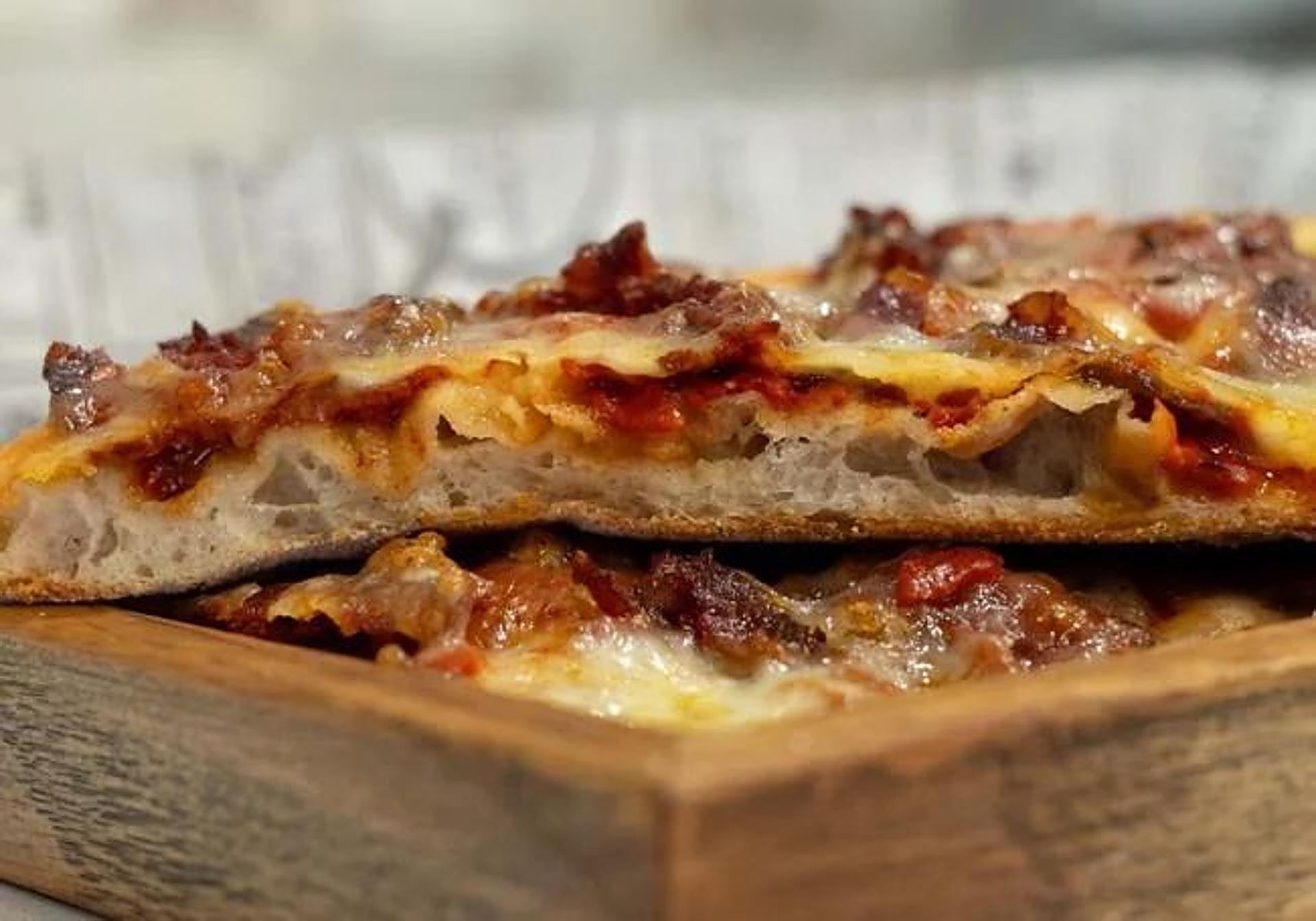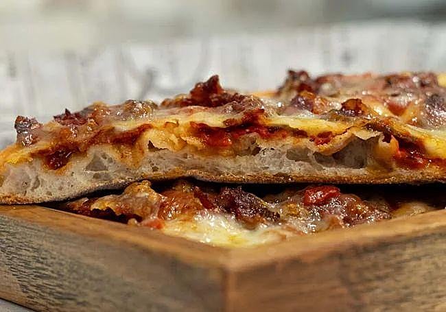 Se trata de una pizza rectangular de origen neoyorquino en la que entre sus ingredientes se encuentran el aceite de oliva, la levadura seca, la scamorza ahumada, la 'Fior di latte', el alioli de pimiento asado al carbón, el chorizo de vaca, la N'duja picante y miel.