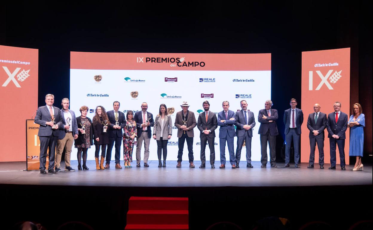 Admiración, respeto y homenaje». Esas palabras son el perfecto resumen de lo que suponen los Premios del Campo de El Norte de Castilla, que en este 2022 han llegado a su novena edición, y que anoche volvieron a reunir en el Teatro Calderón de Valladolid a una buena representación del campo regional. Estos premios cuentan con el patrocinio de Tierra deSabor, Reale Seguros, Unicaja Banco y Pascual.