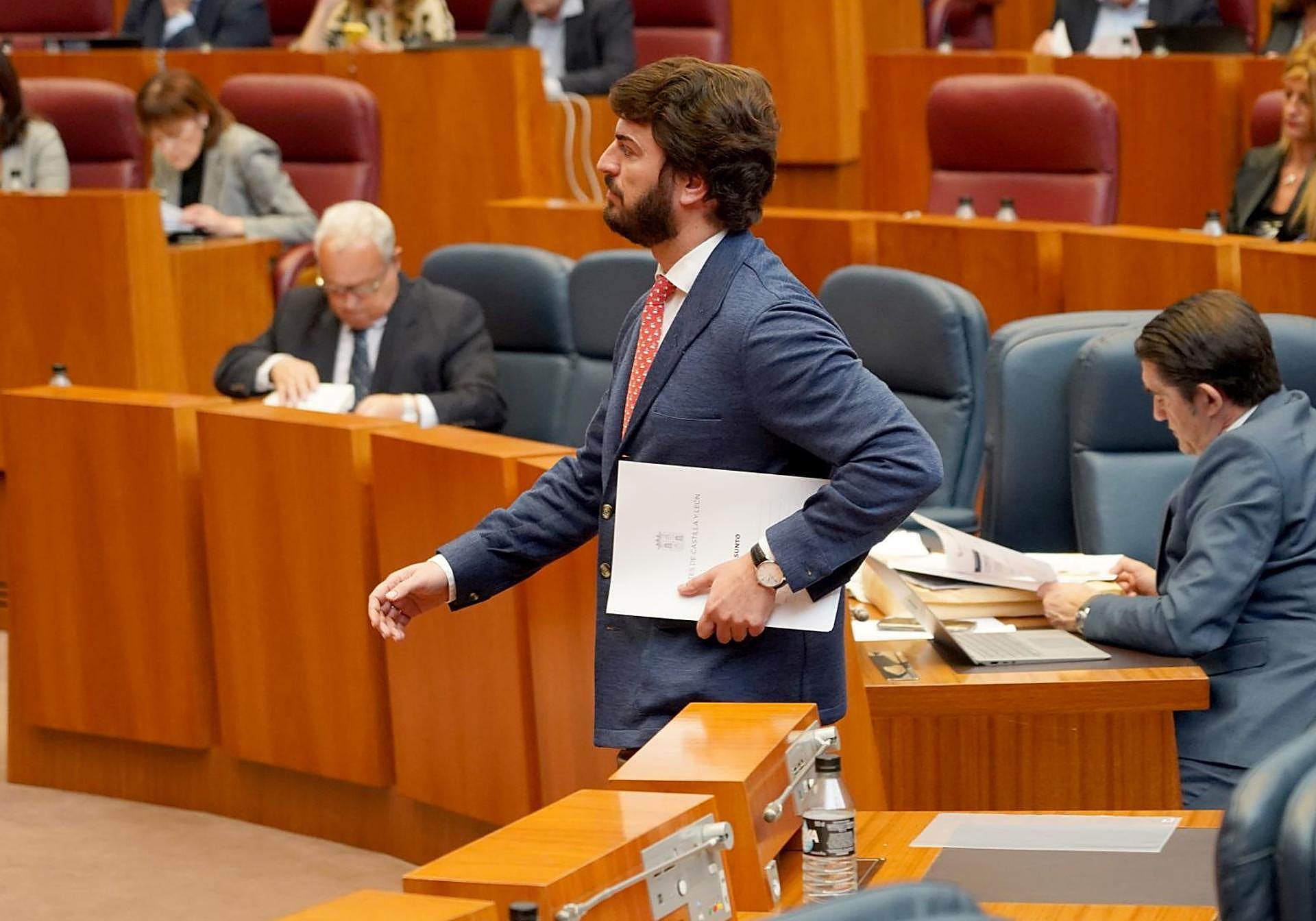La oposición más frontal al PP en la parte los escaños en los que se apretó el botón rojo del voto en contra al techo de gasto para 2025 fue de Vox, sus compañeros en la Junta hasta julio. «Están gobernando en minoría», recordó Carlos Menéndez a la bancada popular. El procurador al que Juan García-Gallardo, tras dejar de ser vicepresidente autonómico, relevó como portavoz en las Cortes acusó a Alfonso Fernández Mañueco de promover «una pantomima y un circo» con un debate presupuestario engañoso, sin voluntad real de sacar adelante las cuentas. Recordó que los dirigentes populares llamaron con insistencia a los de Vox para garantizarse su apoyo tras las elecciones de febrero de 2022, por el interés en seguir en la Junta, algo que ahora no ocurre. Menéndez afeó a Mañueco que haya dinamitado en Castilla y León los puentes de diálogo con Vox que sí mantienen los populares en otros territorios.