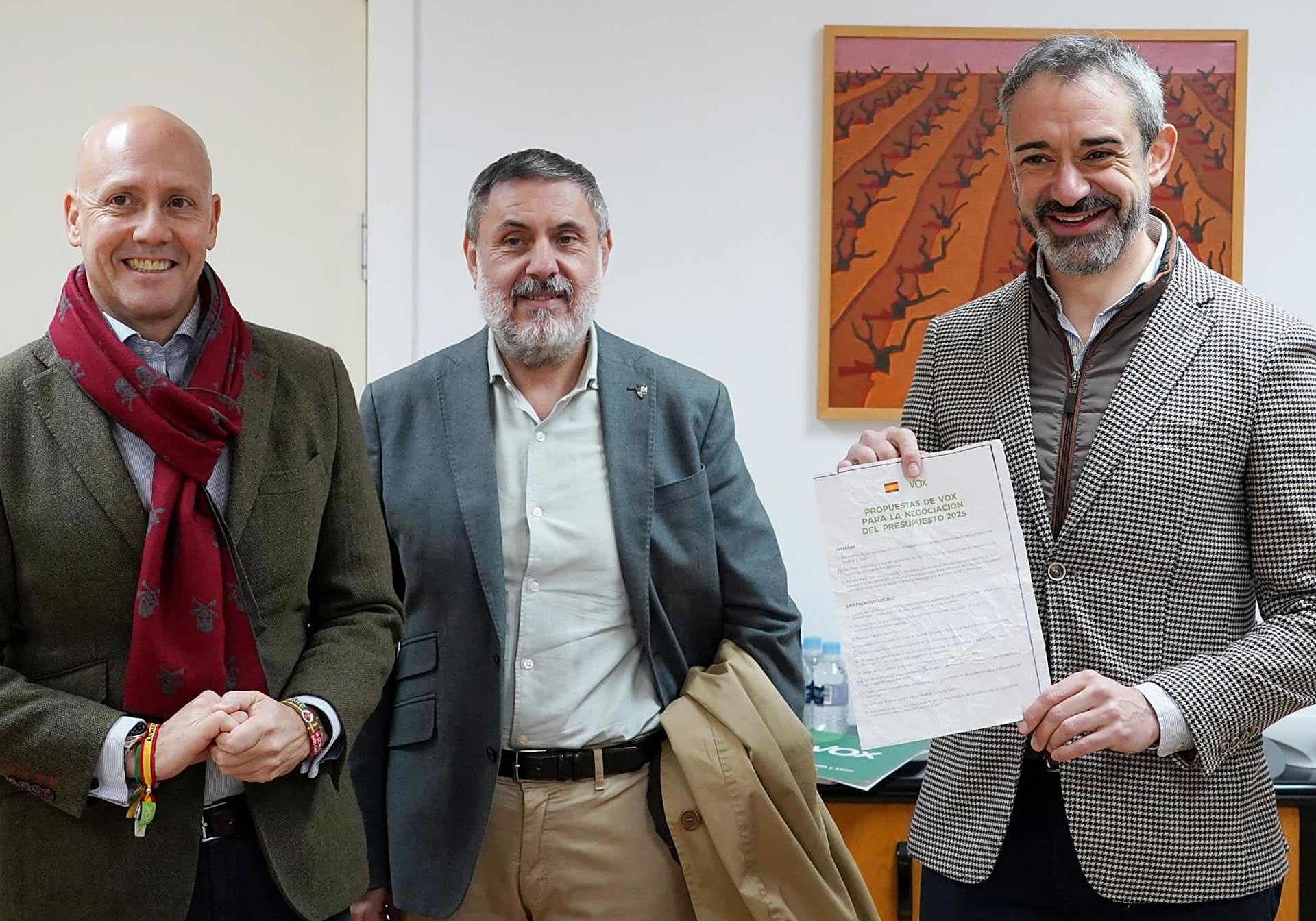 Este es el resumen de la posición que mantiene Vox frente a las cuentas que ha presentado el PP en las Cortes. Lo dijo David Hierro, portavoz parlamentario, tras la reunión que mantuvo con el consejero de Economía y Hacienda, Carlos Fernández Carriedo, a la que el dirigente de Vox entró con el «gurruño», que es el papel con las exigencias que dejó en marzo sobre el escaño de Mañueco, durante el Debate sobre el Estado de la Comunidad, y que el dirigente del PP convirtió en una bola arrugada para mostrar su distancia respecto a los exsocios. Estos pretenden ahora que los populares 'planchen' ese gurruño y que lo haga el propio presidente de la Junta admitiendo en público que acepta lo que ahí se recoge.