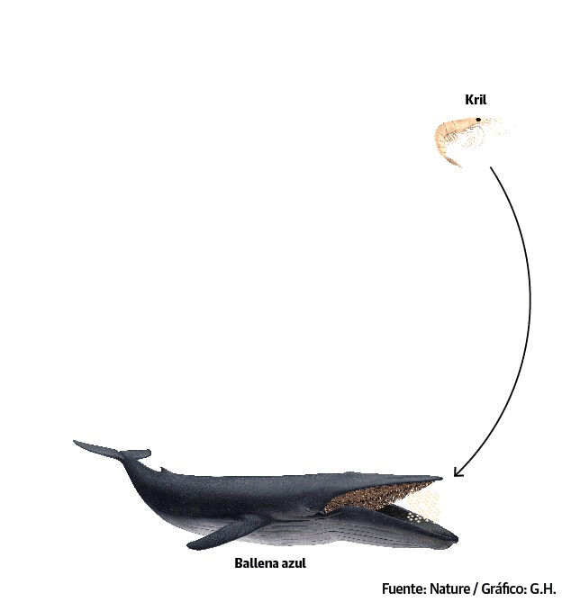 Durante el siglo pasado, el ser humano mató como mínimo 2,9 millones de ballenas, según un estudio publicado en la 'Marine Fisheries Review' en 2015. Suele decirse que, en ausencia del depredador, las presas se multiplican. Parece lógico, pero en el caso del kril ocurre lo contrario. «Se da un fenómeno paradójico. Al no procesar las ballenas todo ese kril, no hay un reciclaje rápido del hierro que contiene y no se pone ese mineral a disposición de las microalgas, con lo que se produce menos kril y automáticamente hay menos alimento para las ballenas», explica Pérez. En muchas partes del océano, falta el hierro como nutriente y ahí entran en escena las ballenas, que, como comen mucho kril, defecan mucho hierro.