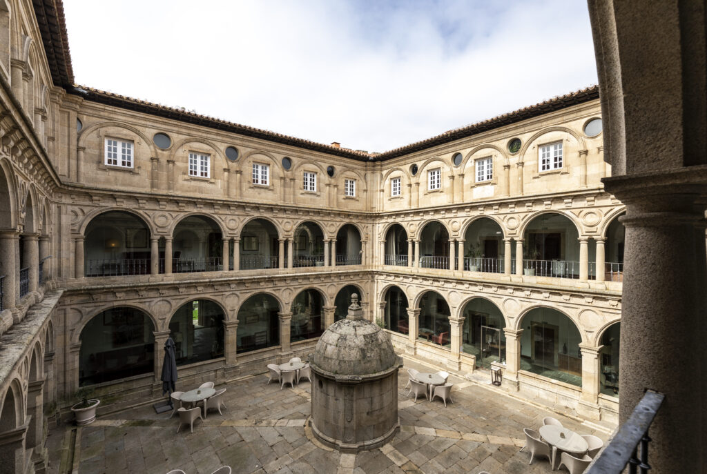En la parte alta de Monforte de Lemos se puede visitar el Conjunto Monumental de San Vicente do Pino, formado por la Torre de Homenaje, el Monasterio de San Vicente y el espectacular Parador de Monforte de Lemos, construido en un imponente edificio neoclásico cuyo interior sorprende con un claustro central, perfecto para pasear entre el silencio y detenerse a admirar su belleza. Si tanto encanto despierta tu apetito, estás en el lugar idóneo para disfrutar de la mejor gastronomía gallega con vistas a la ciudad de Monforte de Lemos: en su restaurante se ofrecen productos vinculados a la región, como el pulpo á feira, empanada casera o zamburiñas a la plancha, opciones que se complementan a la perfección con el postre típico de la zona, las filloas caramelizadas. Coge fuerzas con el menú y aventúrate a conocer la Ribeira Sacra, porque en los alrededores del Parador te esperan lugares tan increíbles como los Cañones del Sia o la sierra de O Courel.