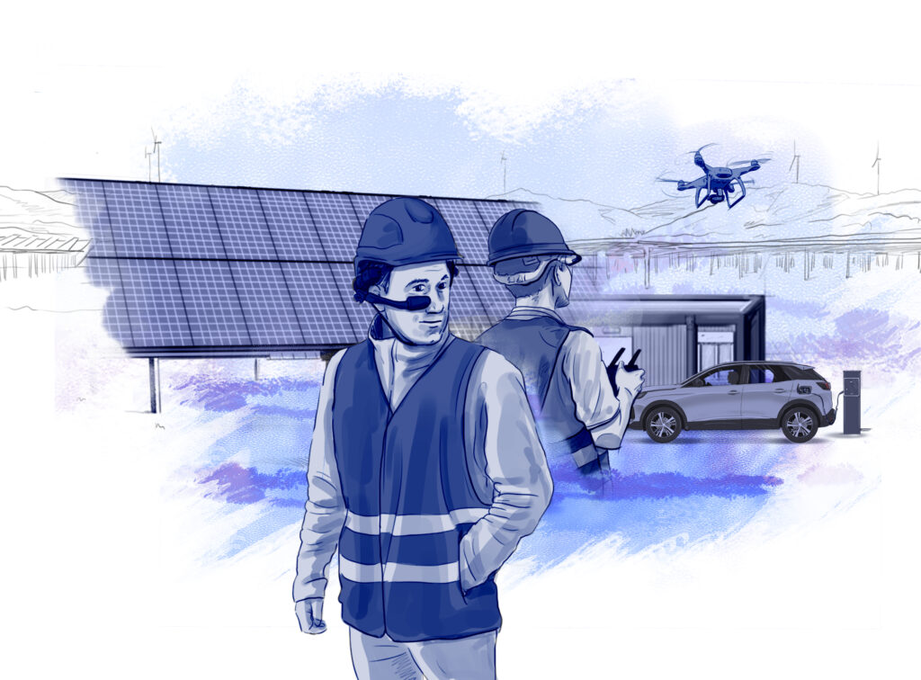 La tecnología que Endesa emplea durante la construcción de Dulcinea también empuja en esta dirección. “Utilizamos unas gafas inteligentes que te permiten mostrar lo que tú estás viendo a un grupo de personas en remoto e incluso contraponer un plano para ver lo proyectado sobre lo que hay en la realidad”, indica el experto. Este tipo de gafas inteligentes logran evitar muchos desplazamientos, por ejemplo, para recibir asistencia técnica o incluso a la hora de completar una auditoría de seguridad, ya que se pueden completar en remoto.