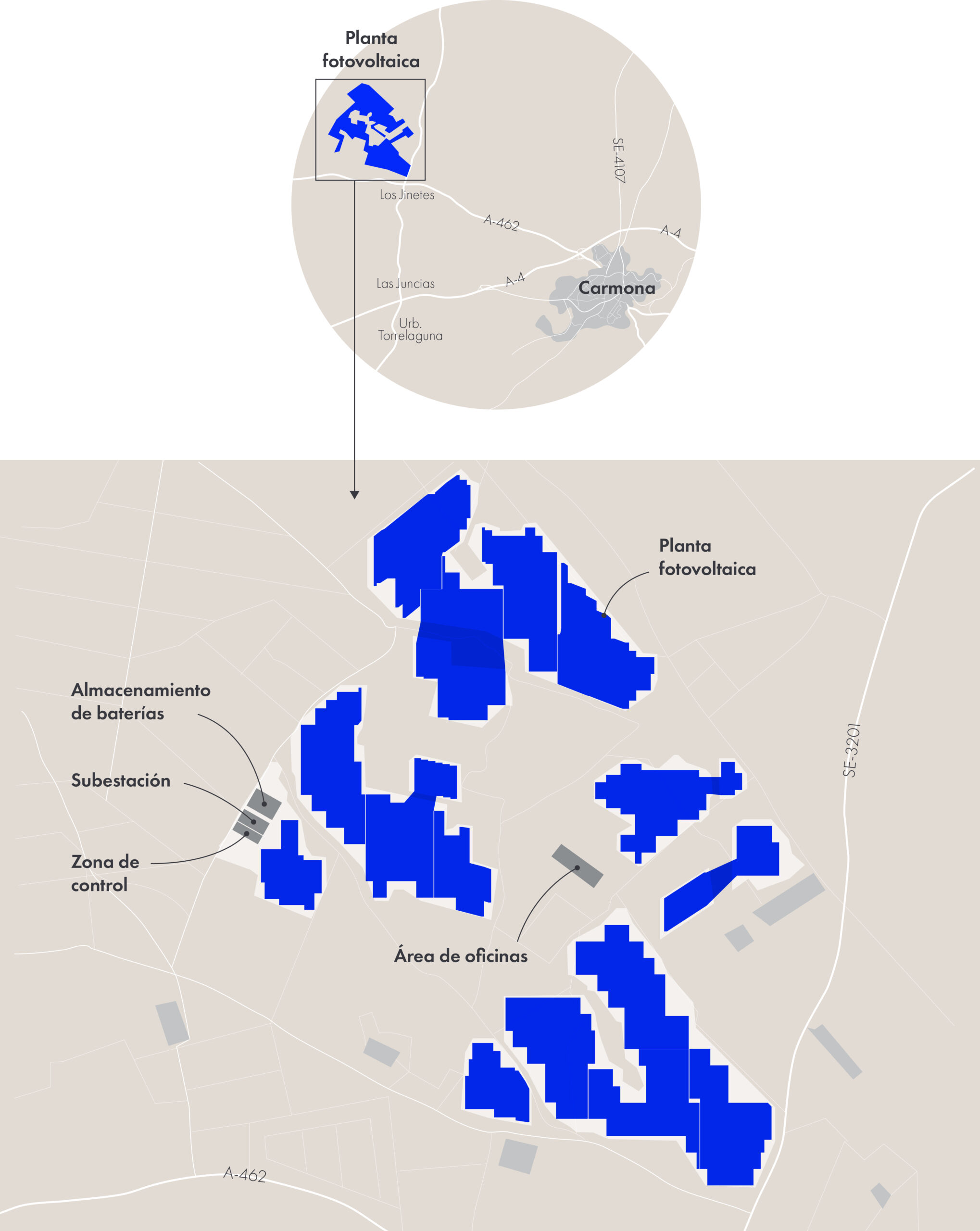 Para la construcción de esta nueva planta solar y las infraestructuras que se realizarán en paralelo —como una subestación y líneas de alta tensión—, se crearán unos 650 puestos de trabajo directo y otros 70 indirectos, siempre fomentando la contratación de mano de obra local. La compañía ha realizado cursos de formación en colaboración con el Ayuntamiento de Carmona, que han permitido a 76 personas obtener un título en construcción y operación y mantenimiento de plantas renovables, abriendo un futuro profesional en un sector que está en auge.