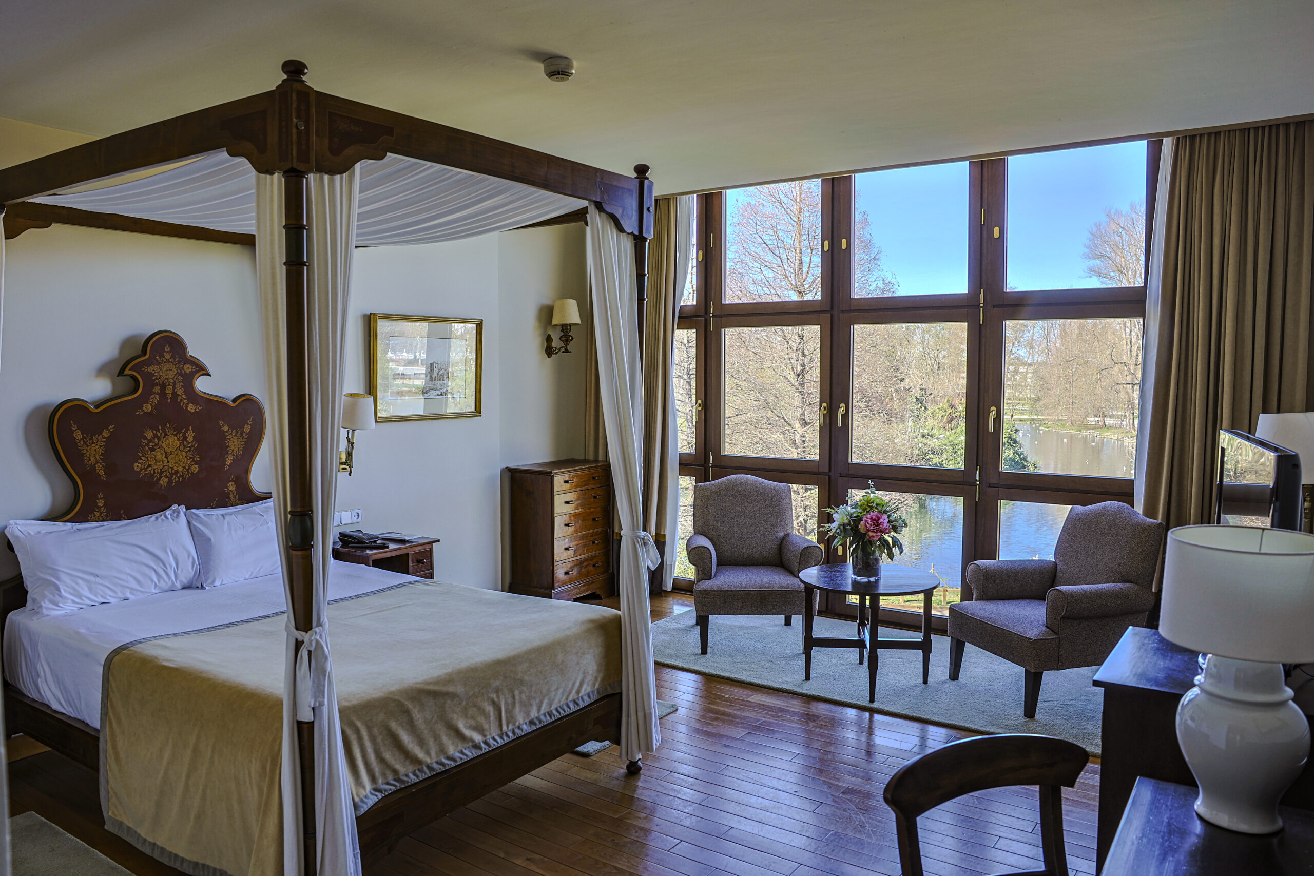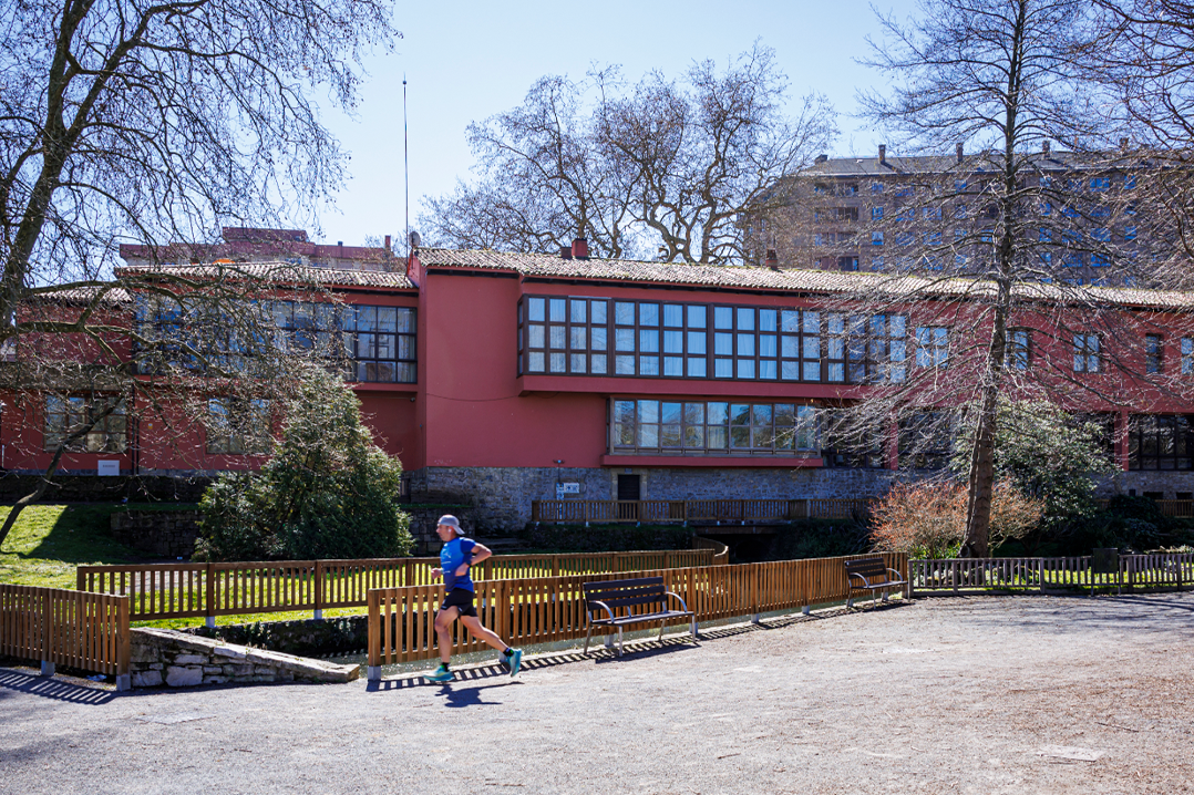 A principios de los 80 se amplía hasta las 40 habitaciones actuales. Y es aquí, y ahora, donde nos hallamos, sentados con Pilar Valdés en la galería y cafetería, un largo y ancho pasillo colmado de mesas, con un flanco cubierto por enormes cristaleras, ventanales que se abren al jardín que, a partir de la Semana Santa, se transforma en una de las terrazas más agradables de Gijón, cónclave de reunión para tomarse un café, disfrutar bajo sus árboles, su riachuelo, su puente, sus palmeras y al albur de la vegetación (y los vestigios del antiguo cauce) de un aperitivo, comer, tardear hasta las doce de la noche… Sí, ajenos al mundanal bullicio exterior. El otro extremo del Parador, digamos la parte de atrás, confluye en el inmenso Parque de Isabel la Católica, repleto de paseantes, diletantes del placer, un sosegado vergel colmado de estanques, pavos reales, cisnes, patos, 65 especies de plantas distintas, uno de los mayores parques urbanos de Asturias y considerado Bien de Interés Cultural. A este jardín miran las habitaciones superiores (todas las del Parador son dobles, excepto una individual), un lujo acariciado por la naturaleza.