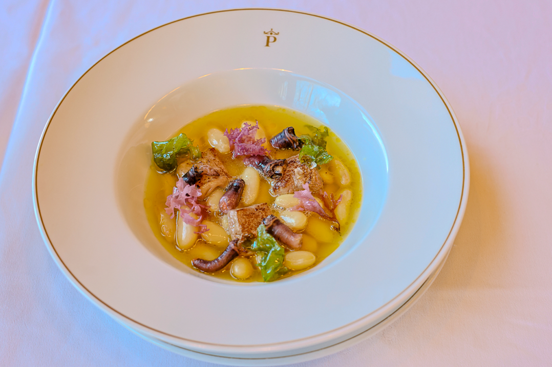 El patrimonio gastronómico asturiano es inabarcable, jugoso, suculento, y el Parador de Gijón es uno de los mejores enclaves en los que disfrutar de sus delicias culinarias. A los mandos de sus fogones se encuentra Abraham Alonso Delgado, un ovetense de 42 años, amante de los productos de su tierra y apasionado de trabajar con las manos, porque “al final los cocineros somos artesanos y tenemos la posibilidad de no seguir una partitura y proponer variaciones”. La esencia que palpita en los platos del Parador es la tradición que emana de esas raíces asturianas, léase fabada y pote, chacinas o quesos como los de Afuega’l Pitu, Gamoneu, Ahumado de Pría, La Peral, Cabrales… “Elaboramos la fabada tradicional pero también una que hacemos con percebes del cabo Peñas, para contribuir al desarrollo de la pesca de la zona. La salinidad que aportan los percebes la contrarrestamos con la grasa del foie, es un plato que gusta mucho”. En la carta del Parador no faltan los chipirones afogaos, típicos de Gijón “y que realizamos con una jardinera de verduras, enteros y rehogados con un poco de sidra”, las cebollas rellenas de bonito (cocinadas lentamente en una salsa de tomate), pescados frescos de las costas asturianas y, cómo no, postres emblemáticos como la tarta tatin de manzana, el arroz con leche y los frisuelos “que rellenamos con un requesón típico del Occidente”. Y no se olviden de sus callos, eso sí, a la asturiana, “que aquí se pican muy ‘fininos’, y son pegajosos y picantes; no son grandes como los que se elaboran a la madrileña”, apunta Abraham. Crema de andaricas, carne estofada y riñones al jerez con llámpares (lapas), una asociación de sabores espectacular.