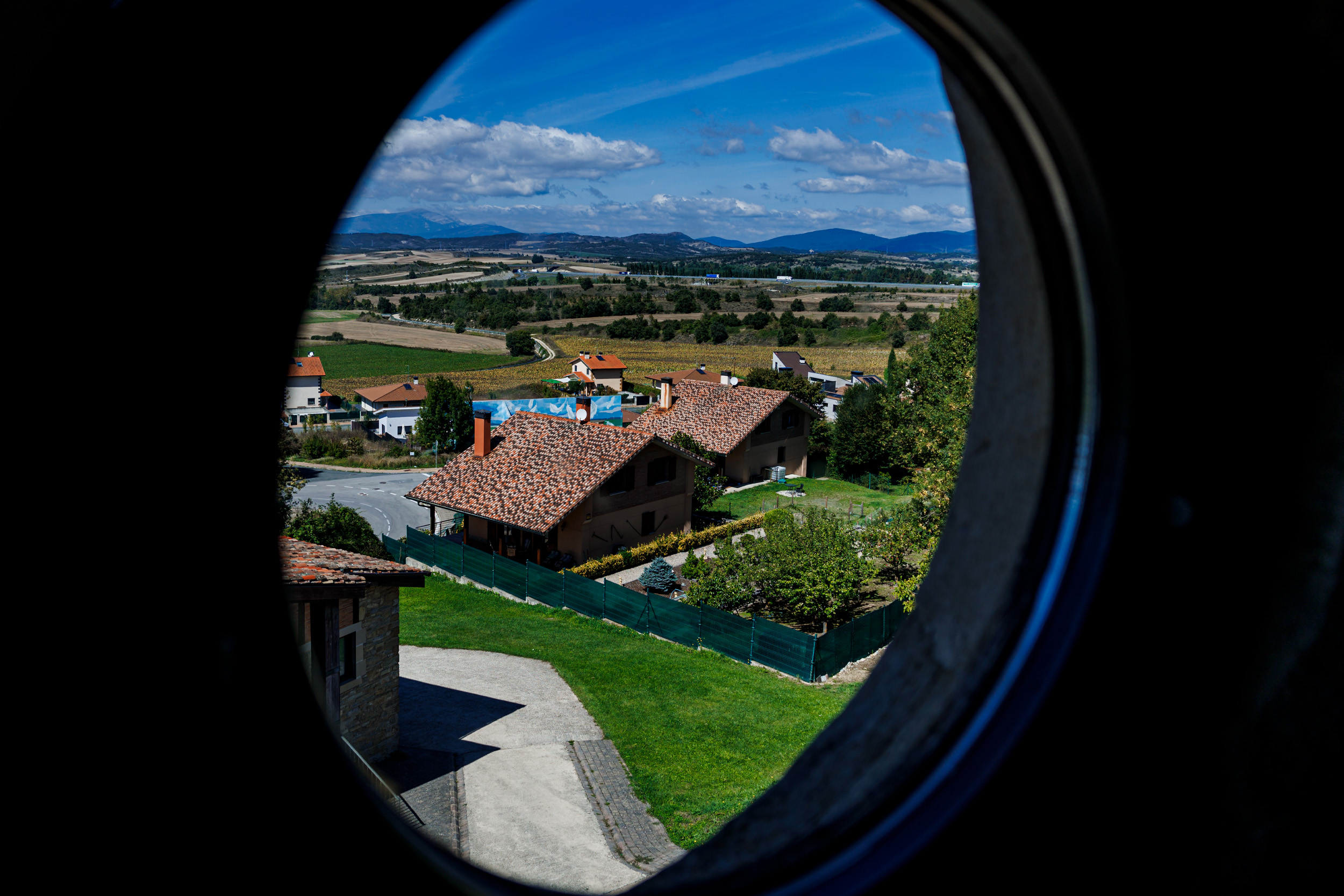 A tan sólo quince minutos en coche se halla Vitoria-Gasteiz, la capital provincial. La localidad se encuentra, a la vez, a unos cuarenta y cinco minutos de Bilbao, lo que facilita el acceso a la fantástica escena artística, gastronómica y museística de la ciudad, como el Museo Guggenheim. Para aquellos interesados en la costa, San Sebastián está a aproximadamente una hora en coche, algo que permite disfrutar de sus playas y su arquitectura aristocrática, repleta de buen gusto. Este enclave de paz a poco tiempo de otros lugares tan llamativos como éste, fue uno de los motivos por los que Napoleón situó allí sus tropas. Muy cerca de Argómaniz, el pintoresco pueblo de Laguardia, con su encanto medieval y bodegas subterráneas, es una visita ineludible que complementa perfectamente la experiencia. Con estas distancias cómodas y accesibles, Argómaniz se convierte en una base excelente para quienes desean explorar todas las riquezas que esconde el País Vasco desde un lugar donde pueda disfrutar del mejor descanso. No obstante, quien sólo busque un fin de semana de relax, se podrá quedar en la atalaya contemplando las extensiones de campo. Un pequeño secreto de este redactor: en el jardín pacífico donde uno puede disfrutar de un refresco o una buena copa de vino de la Rioja alavesa encontrará una zona verde más allá, bajo una pérgola, donde no hay servicio de terraza, porque está pensado para sentarse a leer o conversar con calma con quien nos acompañe. Allí, hay un pequeño camino que da a la carretera, y si caminamos hacia la derecha contemplaremos la iglesia de San Andrés, una edificación del siglo XVI donde hay un banco que tiene las mejores vistas del lugar.