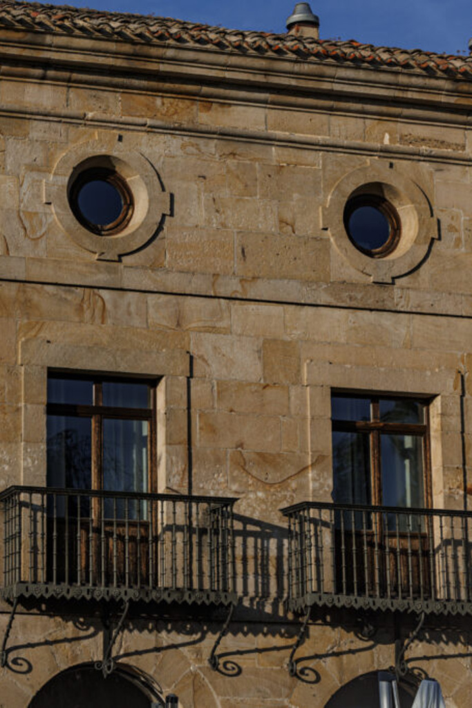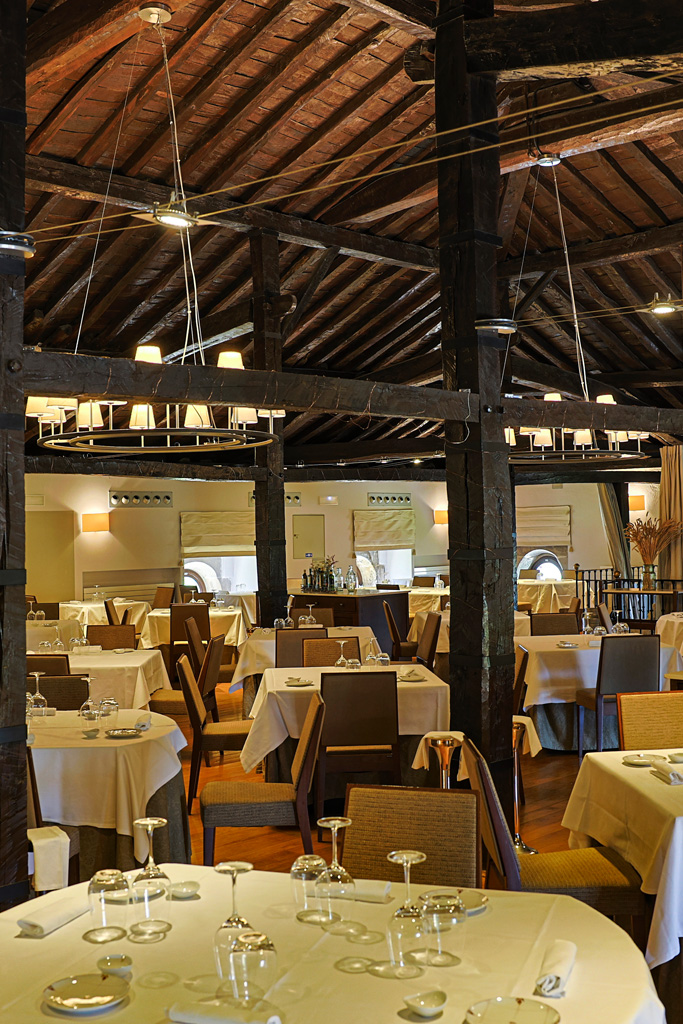 Originalmente propiedad del Virrey de México, el palacio pasó a la familia Larrea, quienes realizaron importantes aportaciones al edificio. “La familia Larrea dotó al edificio de rejería eclesiástica, mampostería y heráldica”, explica Manuel. Además, la última planta era el granero, donde hoy se ubica el salón-restaurante. Al subir las escaleras que conducen al gran salón, uno puede contemplar la cubierta donde queda a la vista la viguería, que se soporta gracias a las filas paralelas de pilares de madera. Resulta llamativo, por su carácter imponente, el entramado que no posee ningún anclaje metálico. Allí, esa presencia de la madera convierte al restaurante en un lugar donde la comida se disfruta de otra manera, sobre todo porque las ventanas de ojo de buey dan a la Llanada y los comensales pueden contemplarla mientras disfrutan de la comida.