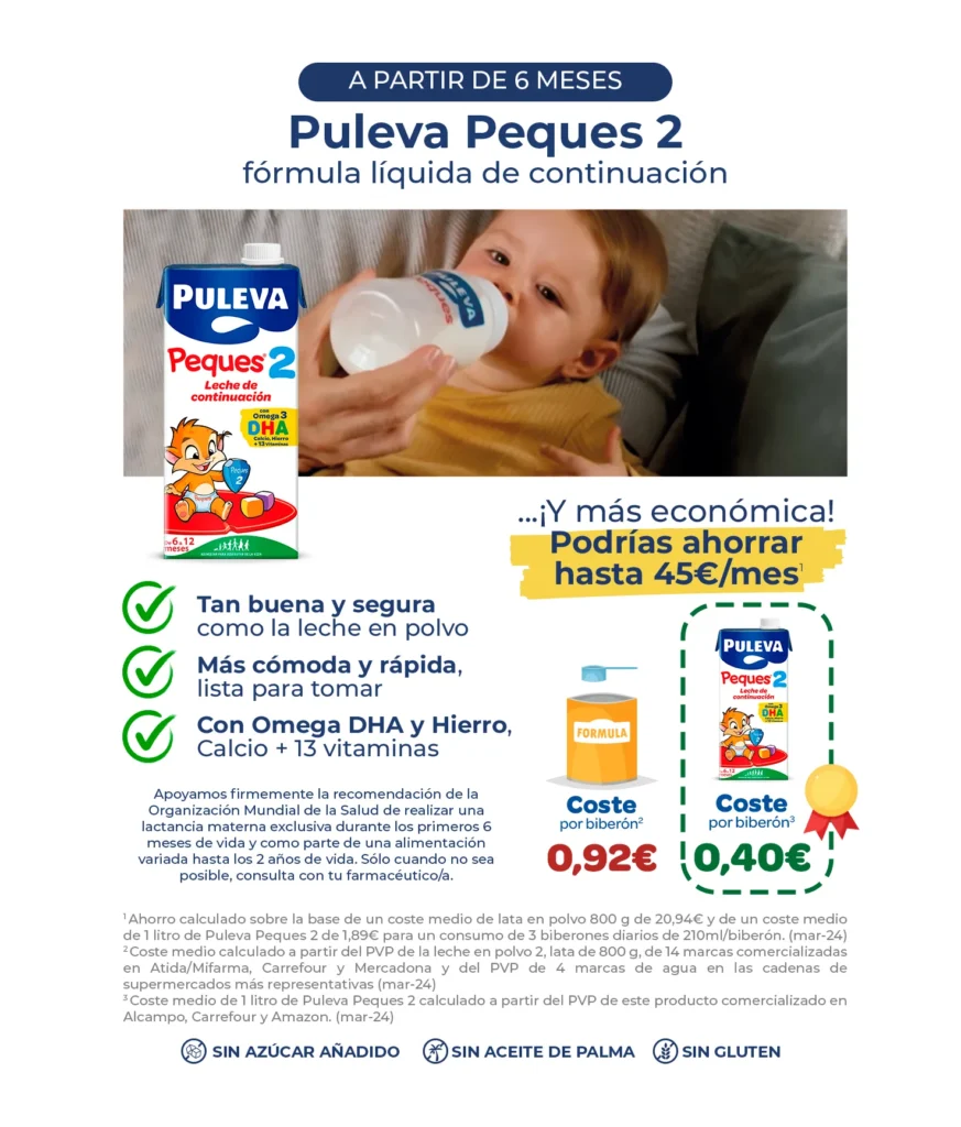 Hoy día existen fórmulas nutricionales adaptadas que ayudan a cubrir las necesidades específicas de los niños en cada etapa de su vida. Leches como Puleva Peques 2, Peques 3 o Max están formuladas para ofrecer un equilibrio ideal de nutrientes, favoreciendo un desarrollo saludable y cómodo en cada fase.