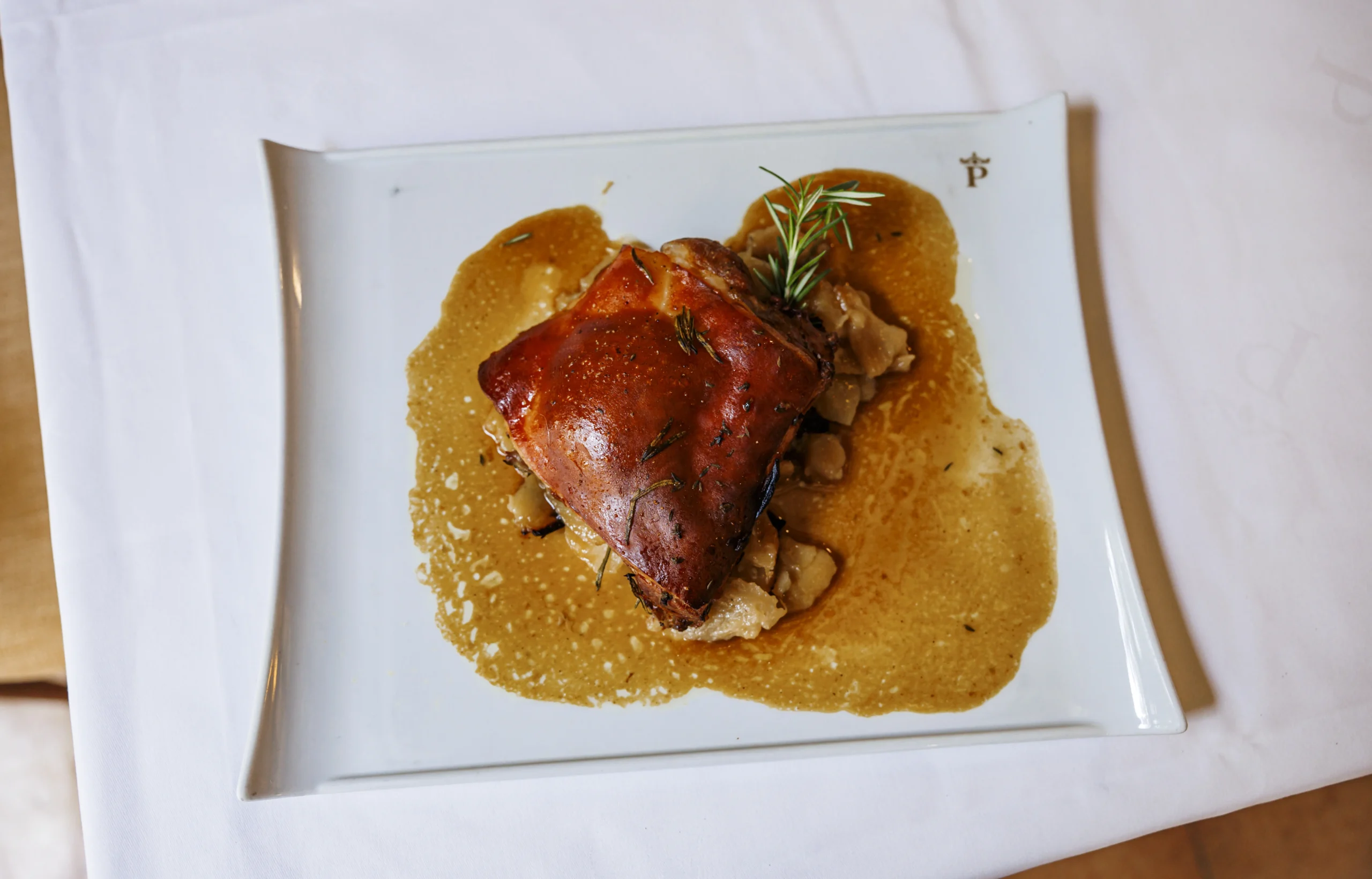 ¿Su primer plato? “Una tortilla de patatas”. Después de eso, pasó por el Centro Superior de Hostelería de Galicia. “Entré siendo un aficionado y me convertí en profesional”, comenta. Basa su cocina en la tradición, pero, por el contrario, con “métodos modernos”. Su lema es “tradición o morir”. La pasión serena que desprende le lleva a confesar que “la cocina es mi razón de ser”; quizá por eso ya ha pasado por el Parador de Nerja o de Alcalá de Henares. Su concepto de cocina acoge, no obstante, la reinterpretación de los platos de siempre. Por ejemplo, la sopa de ajo —tan típica de Chinchón— “se prepara jarreada  con una loncha de jamón serrano que se hace a fuego lento y el huevo”. La sencillez y el cuidado con la que se elabora lo elevan a algo trascendente. El cochinillo y la paletilla de lechazo hacen el resto. Que el ser humano pueda ir de Madrid a Nueva York en diez horas pero no haya desentrañado la forma de conseguir el crujiente del exterior del cochinillo al mismo tiempo que preserva la ternura de su carne es algo que eleva el control del fuego a categoría de arte y este cocinero lo posee. La paletilla, con su romero fresco, es tan o más inolvidable. Su alma gallega lo ha llevado a incorporar el pulpo a la revolcona: una pata de pulpo con ajos negro que ha fermentado y patatas revolconas. El postre insignia con el que recorrer una carta que resucita nuestra mejor cocina familiar es el carajillo de Chinchón: una gelatina de café se complementa con helado de café y crema de anís. Quienes más disfrutan del café es posible que encuentren su nuevo postre favorito.
