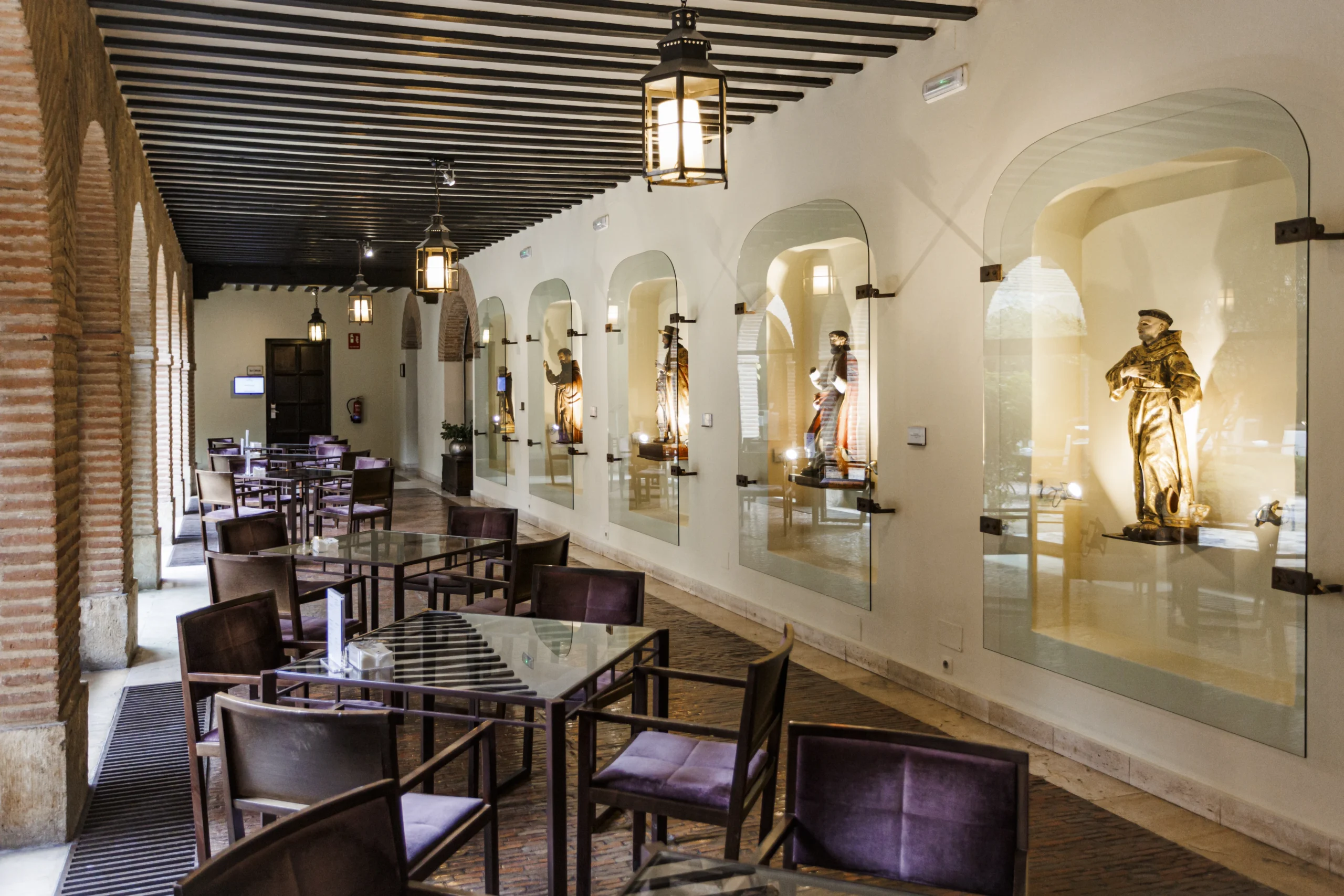 En el Parador no es cine todo lo que reluce, pues su colección de arte sacro es una de los más relevantes de las colecciones que posee Paradores. Los óleos sobre tabla de San Juan Bautista y Santiago Apóstol, del siglo XVI; o el Cristo Crucificado, realizado en marfil, madera y bronce, perteneciente al XVII son tesoros que unen arte e historia en torno a su claustro acristalado.
