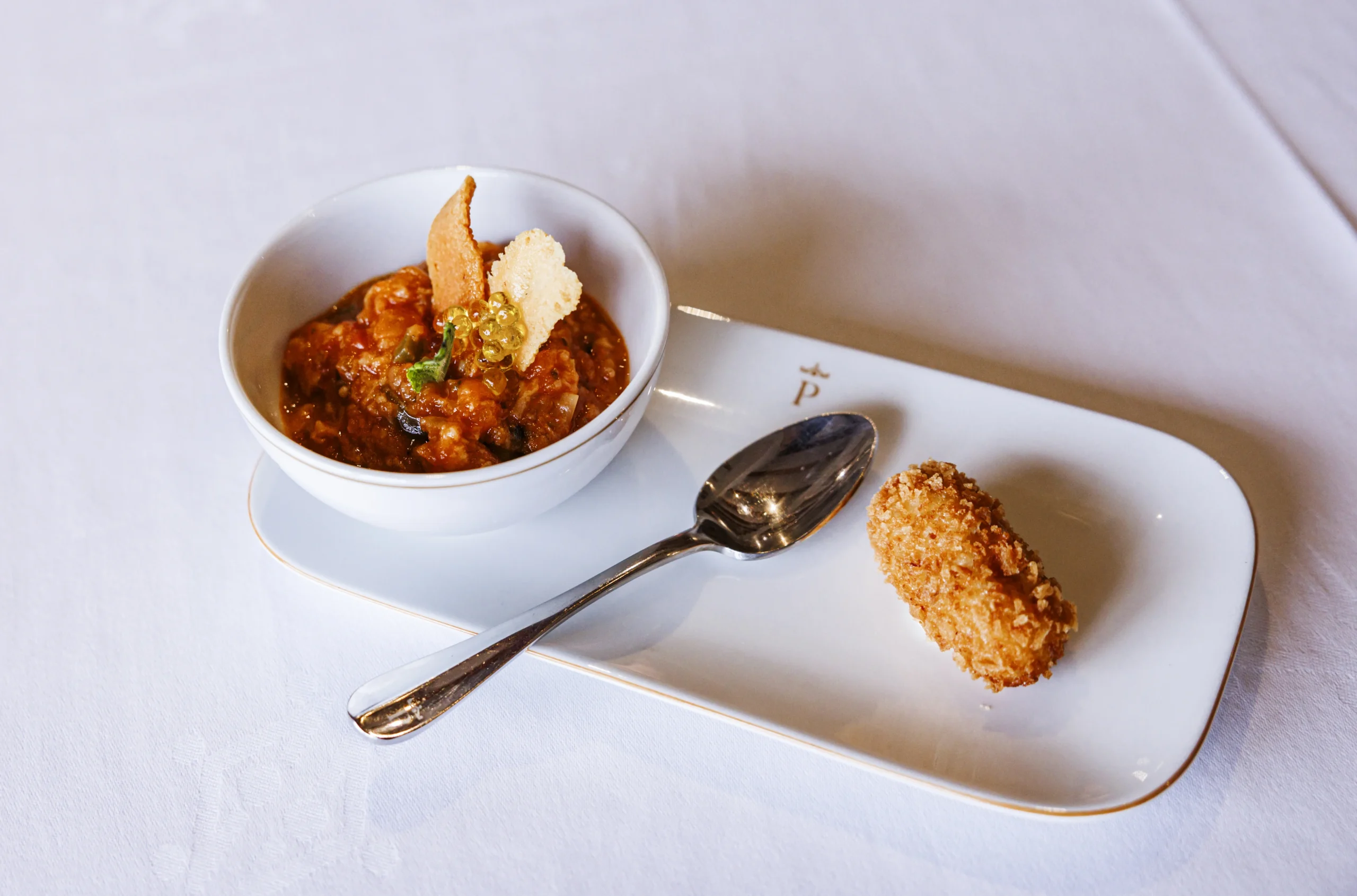 No se crean, sin embargo, que no hay en sus platos una sofisticación envidiable. Por más que su lema sea “el cariño y el amor”, junto con una pasión por la música que le ayuda a concentrarse (“cada vez que entro en la cocina es una fiesta”, confiesa) tiene un talento en sus manos. La sopa de tomate merece una mención especial por todo lo que pueden ocultar los detalles. El privilegio de este enclave es su cercanía con todo lo bueno, el mar y la montaña. Por eso, empezar con una corvina a la roteña, con su cama de cremoso de calabaza, despierta los sentidos. La sierra se presenta a través de dos platos difícilmente mejorables, el lomo de ciervo con puré de castañas y setas de temporada, y el rabo de ternera a la jerezana. El primero es una fina obra del trabajo del tiempo, la espera ve la recompensa de la ternura, que se combina con la delicadeza del puré de castañas y las setas para crear un recuerdo que perdurará en quien lo pruebe. El rabo de ternera a la jerezana mide su calidad por lo fácil que es separar la carne del hueso; el a la jerezana se compone de una base que lleva un sofrito de cebolla, apio, puerro, ajo, pimiento rojo, pimiento verde, zanahoria y puerro. Y no podemos olvidar sus habituales patatas.