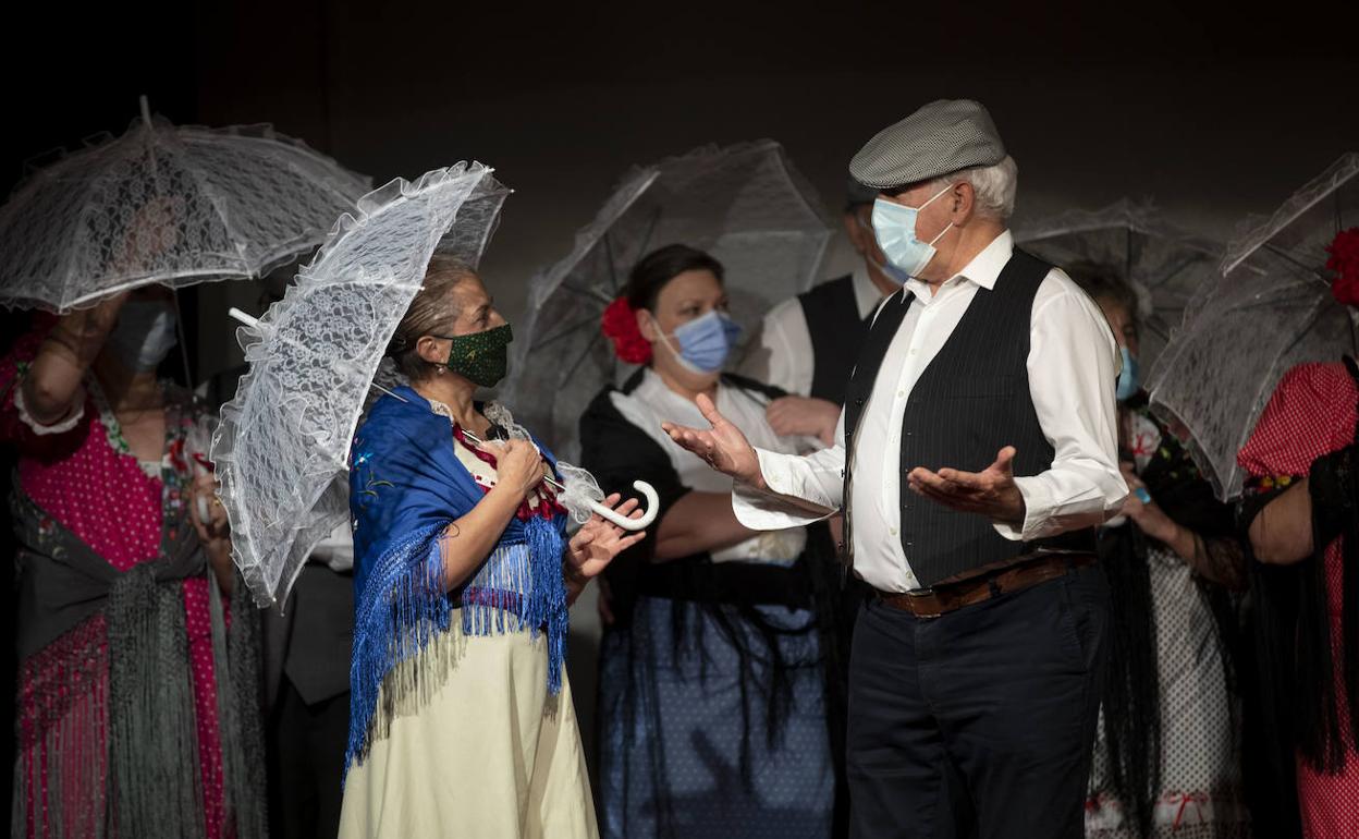 Ambrosio Sánchez es el veterano. Zapatero jubilado, con 77 años, asegura que él es mucho más feliz cuando está cantando. «Llevo la música en la sangre, porque mi abuelo y mi padre fueron cantaores de flamenco. Ellos llegaron a cantar con Rafael Farina y Pepe Marchena», dice orgulloso. Mientras su amigo y compañero Andrés Martínez, de 75 años, afirma que su verdadera vocación es la música. «Soy agricultor en activo y todos los viernes aparco el tractor para asistir a los ensayos. No me pierdo ninguno. Ya de pequeño era monaguillo y las mujeres me decían que iban a misa solo para oírme cantar. Ahora, a veces me falla la memoria con las letras, pero la ilusión compensa todo», comenta con sonrisa nerviosa antes de subir al escenario. Su primera actuación desde que comenzó la pandemia fue el pasado miércoles, en el centro cívico Esgueva, ante un público expectante. Andrés fue el primero en romper el hielo, al cantar como solista 'El abanico' de la zarzuela 'La Chulapona'.