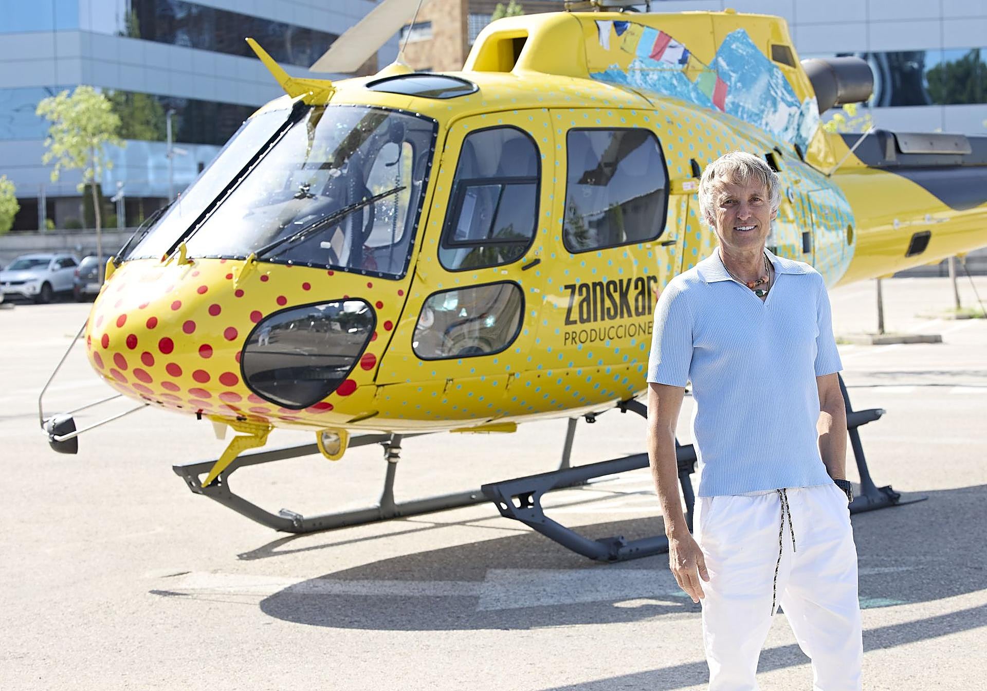 El leonés lleva este jueves el helicóptero de 'Volando voy, volando vengo', formato que presenta en Telecinco, al concejo asturiano de Llanera