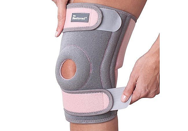 La rodillera de The Restored combina ajuste personalizado y comodidad gracias a sus bandas de velcro y tejido transpirable.