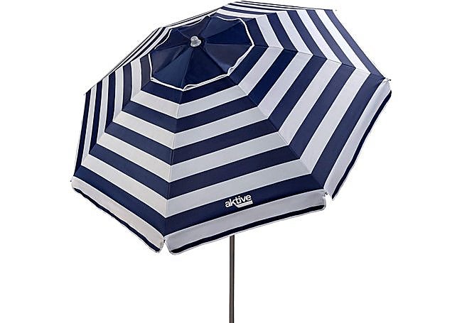 No te confíes: ahora también necesitas esta sombrilla anti viento para tus días de playaLa Aktive 62224 combina protección solar UV 50, resistencia al viento y un diseño marinero práctico para quienes buscan comodidad y seguridad en la playa.