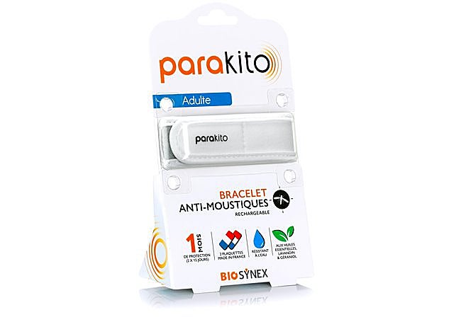 La pulsera antimosquitos recargable Biosynex Parakito utiliza tecnología de difusión continua de aceites esenciales, creando una barrera olfativa efectiva y discreta. Su diseño ajustable con cierre de velcro y la ausencia de DEET la hacen segura para toda la familia, incluidas mujeres embarazadas y niños desde tres años. Ligera y cómoda, puede usarse en la muñeca o el tobillo, incluso en actividades acuáticas gracias a su resistencia al agua. Cada recambio protege hasta 15 días, sumando un mes con las dos almohadillas incluidas.