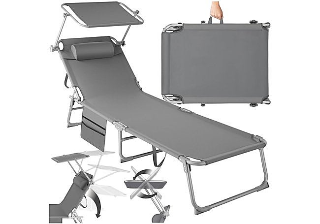 La sombrilla incorporada resulta especialmente práctica para quienes desean protegerse del sol sin renunciar a la comodidad, y el reposacabezas extraíble se adapta a cada postura. Ideal para terrazas, jardines o junto a la piscina, este modelo combina estabilidad y portabilidad, invitando a disfrutar del verano con total tranquilidad.