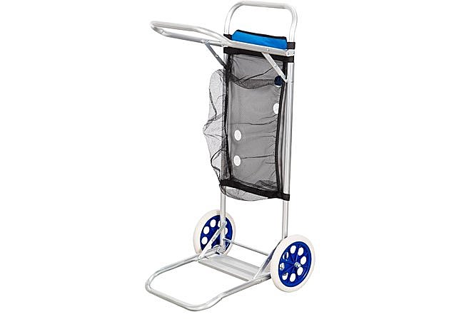 Además, el carro permite llevar hasta cuatro sillas y una nevera. Incluye un neceser y una rejilla inferior para mayor organización, facilitando cada jornada de playa. Su versatilidad lo hace indispensable para disfrutar al máximo de tus días de descanso.