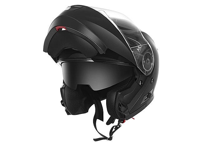 La doble visera con lentes HD y protección UV garantiza visión clara y protege del viento y la lluvia. Se adapta a distintas tallas gracias a su correa ajustable y cierre de seguridad. Este casco transmite confianza en cada viaje, asegurando una experiencia de conducción segura.