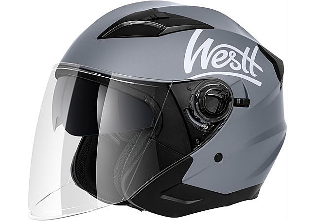 El casco jet Westt cuenta con doble visera resistente a arañazos y cumple con la certificación ECE 22.06, garantizando su seguridad y calidad. Dispone de cuatro puntos de ventilación para una excelente circulación del aire, acolchado interior desmontable y lavable, un diseño aerodinámico que reduce la resistencia al viento y un ajuste personalizable para diferentes tamaños de cabeza.