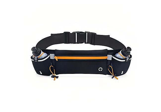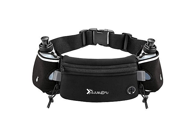 El cinturón Goerpn incluye dos botellas de 180 ml, permitiendo llevar suficiente agua para recorridos de media distancia. Su diseño ajustable abarca de 60 a 130 cm de cintura y la banda reflectante mejora la visibilidad en condiciones de poca luz.