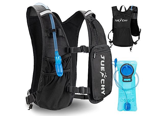 Gracias a su diseño ultraligero, la mochila de hidratación Jueachy es ideal para quienes buscan ligereza y practicidad. Su estructura de nailon y malla transpirable reduce la carga sobre los hombros, y el depósito de 2 litros con válvula de mordida asegura hidratación constante en rutas largas.