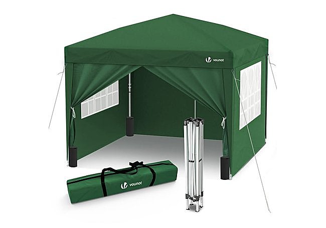 Más que una simple protección solar, la carpa plegable VOUNOT de 3x3 metros destaca por su diseño adaptable y resistente. Su estructura de acero recubierto y techo de poliéster con protección UV50+ ofrecen refugio eficaz en días calurosos o ventosos. Las cuatro paredes laterales desmontables permiten ajustar el nivel de resguardo según la ocasión.