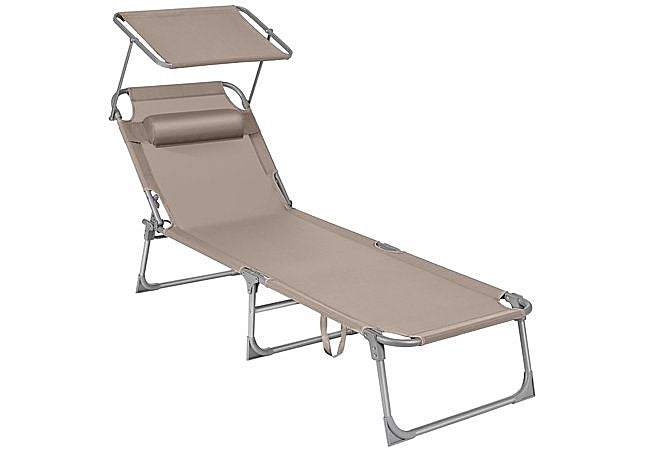 El respaldo reclinable en cuatro posiciones permite tomar el sol o disfrutar de una siesta en la sombra, mientras que el toldo desmontable protege el rostro de los rayos UV y facilita la lectura. Su formato compacto y ligero la hace fácil de transportar y almacenar, ideal para quienes buscan versatilidad y confort en casa o en sus escapadas.