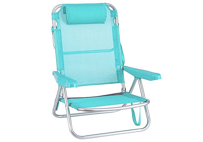 Gracias a su diseño compacto y ligero, la silla plegable baja de LOLAhome en color aguamarina es ideal para quienes buscan comodidad y practicidad en exteriores. Su respaldo alto y asiento bajo ofrecen una postura relajada, perfecta para la playa o el jardín. Además, el respaldo reclinable en cuatro posiciones y el cojín reposacabezas integrado aportan confort adicional.