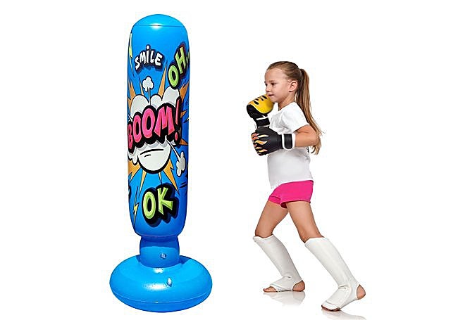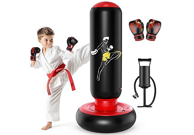 El montaje es sencillo: solo hay que llenar la base de agua o arena e inflar el cuerpo con la bomba incluida. El set incorpora guantes y caja de regalo, invitando a niños y niñas a explorar el boxeo y mejorar la coordinación de forma divertida.