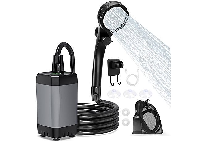 Permite ajustar el caudal en tres niveles, adaptándose a una ducha rápida tras una excursión, la limpieza de mascotas o el lavado del coche. Su resistencia al agua IPX7 y la bolsa de transporte incluida la hacen práctica para acampadas, playa o cualquier actividad al aire libre donde se necesite agua corriente sin complicaciones.