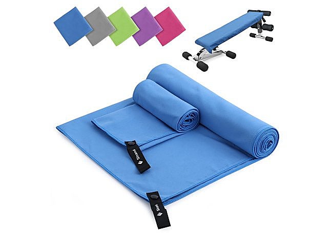 Si te gusta viajar ligero y aprovechar cada rincón de la mochila, este set de toallas de microfibra Sinand transforma la rutina diaria en algo más cómodo. Incluye una toalla grande para el cuerpo y otra pequeña para manos o cabello, ambas con tacto suave y un azul vibrante.
