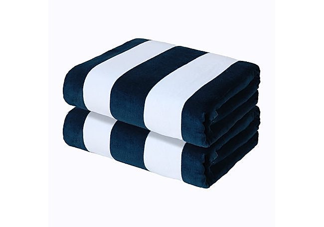 Su diseño clásico de rayas azul marino aporta un aire atemporal, y sus dimensiones de 90 x 180 cm permiten estirarse cómodamente. Es ligera, fácil de transportar y de secado rápido, ideal para cualquier escapada veraniega.