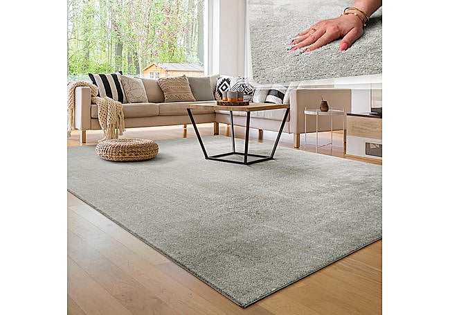 Con un diseño en tono plata y acabado de pelo corto, esta alfombra rectangular de Paco Home aporta un aire elegante y moderno al salón. Su tejido de poliéster de 10 mm combina suavidad y resistencia, ideal para decoración contemporánea. Disponible en varios tamaños, se adapta a diferentes espacios.