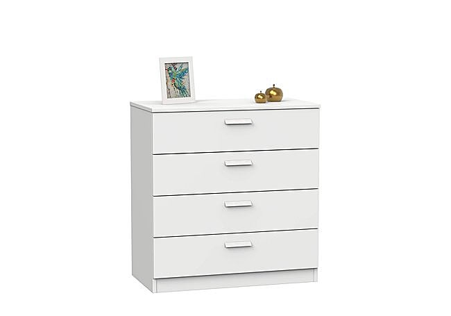 ¡Dale un nuevo aire a tu dormitorio con la cómoda de cuatro cajones Modelo Lara de LIQUIDATOR! Con casi un metro de ancho, ofrece amplio espacio para ropa, accesorios o lencería, manteniendo todo ordenado y accesible. Los tiradores de estilo actual y la melamina de alta calidad garantizan resistencia y un toque contemporáneo.